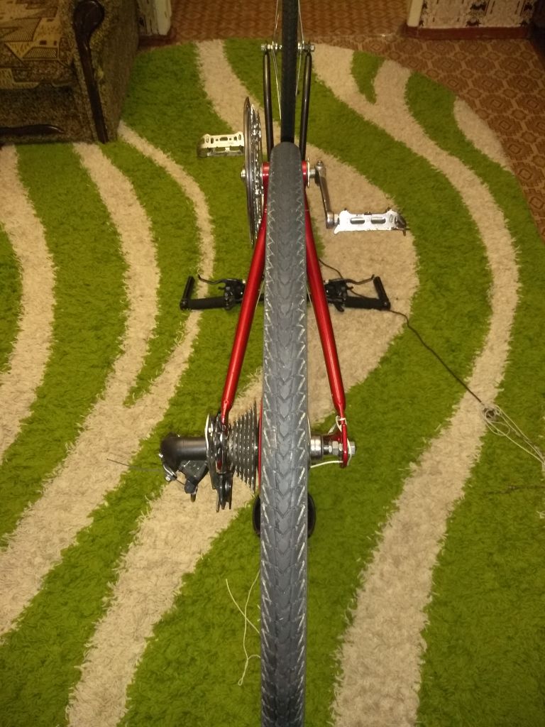 Раму ровнял пытался верхнюю поперечную трубу изгиб убрать, в основном ровная, геометрию измерял ниткой от задних дропаутов до через вилочный стакан.