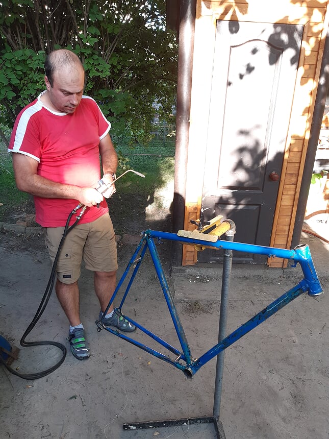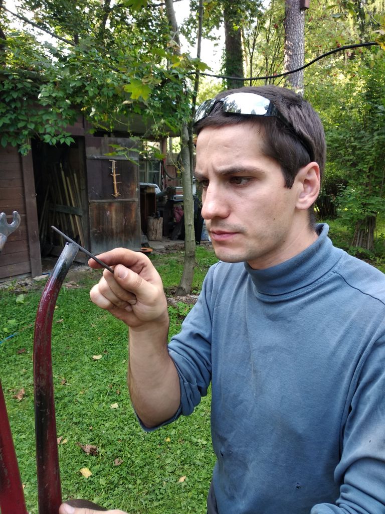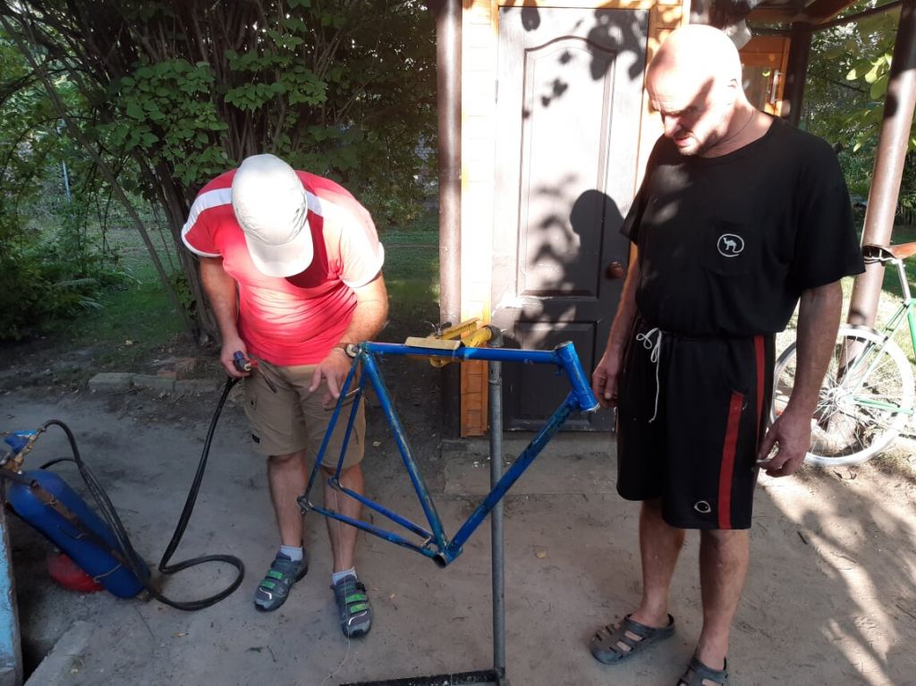 Илья чистит подседельную от вековых отложений на немецкой дамке и Басюке (BSA). Рядом рама двуглазого на тюнинге.
