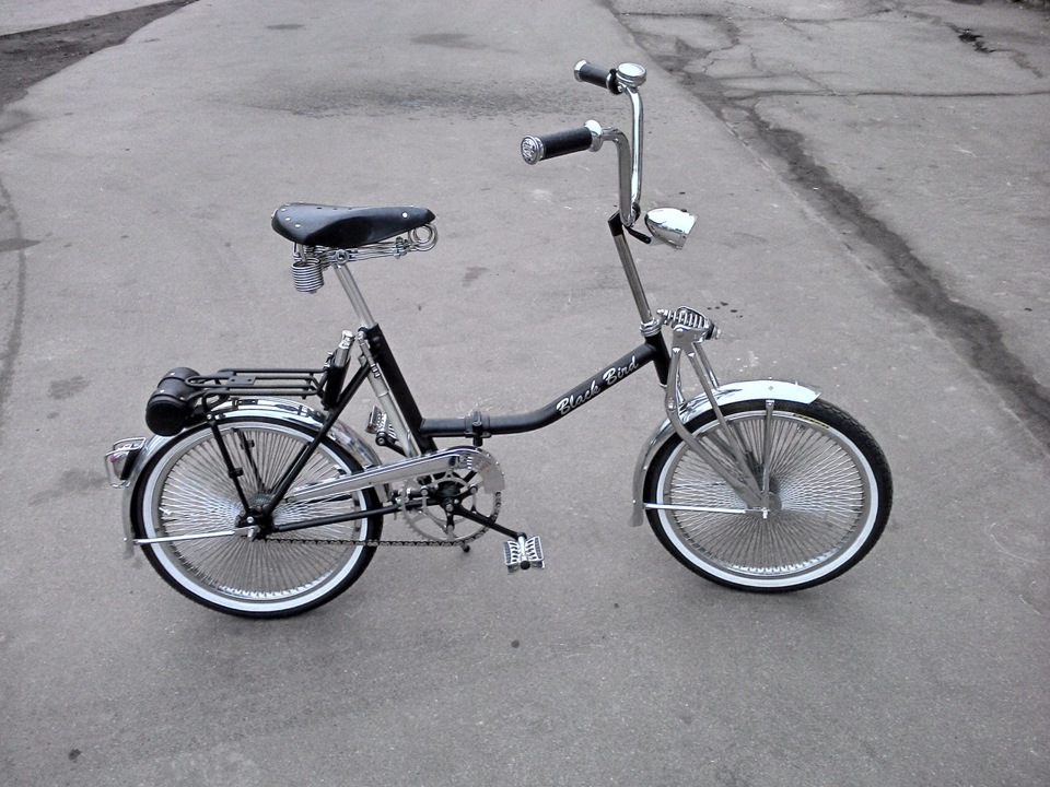Издевательство над складничком какое-то в попытке его "чопперизовать". Хотя седло как у верхнего вела у меня есть — жёсткая пластмасса на пружинах и весит оно как чугунный мост. Может, когда и прикручу его. И руль с выносом и рулевым штырём такие же случайно прикупил. Вполне могу макет чоппера сделать.