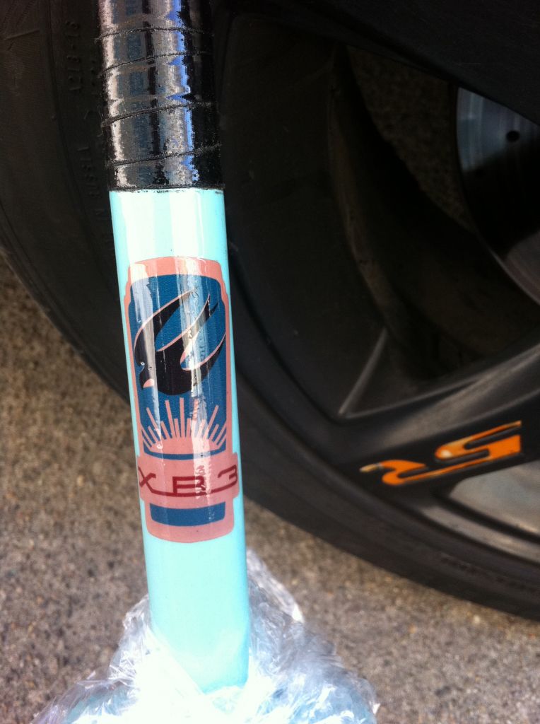 Перед тем как отдать в лак, на шток вилки прикрепил в качестве эксперимента цветную наклейку ORAKAL.