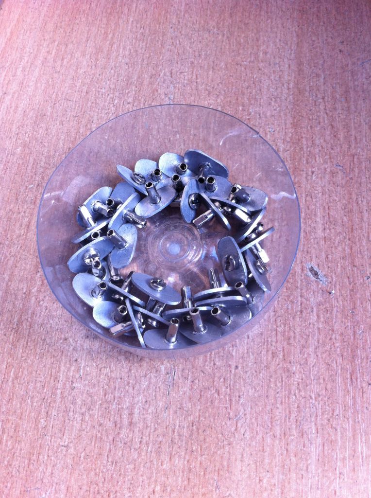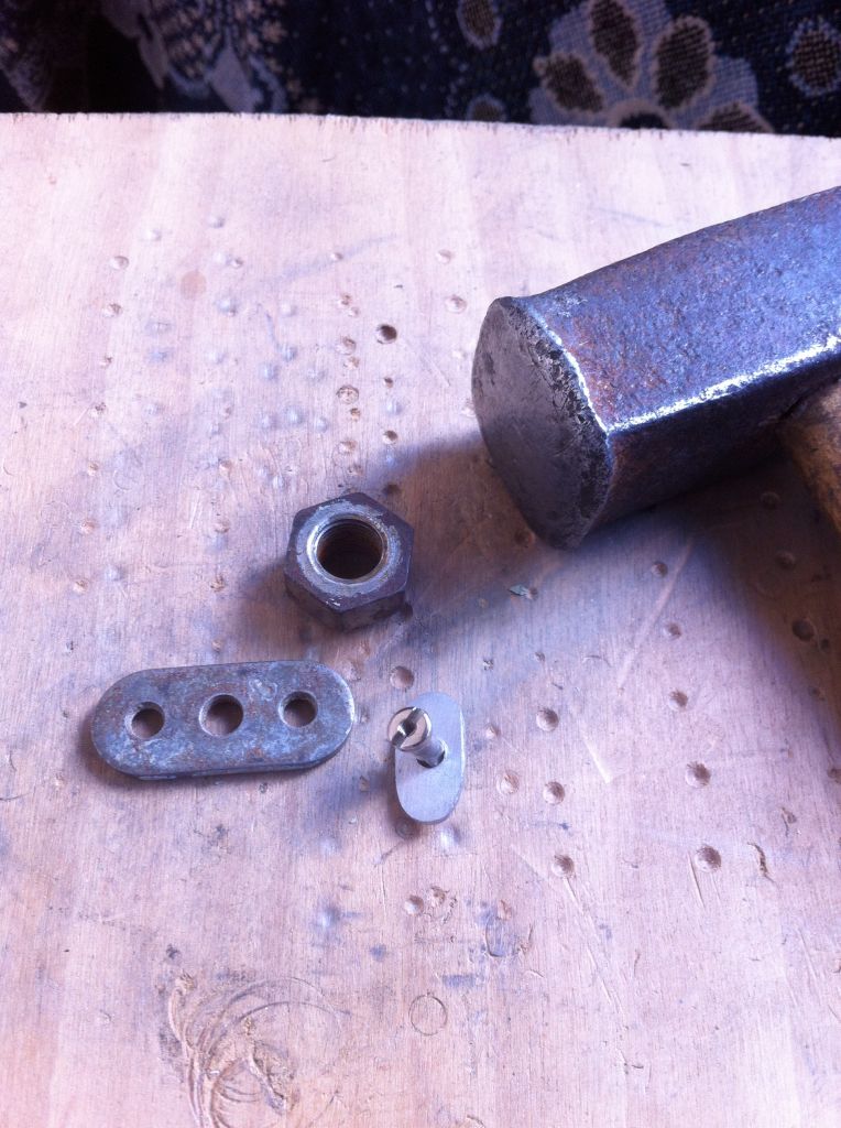 Далее при помощи не хитрой приспособы, посадил и разработал нипеля на шайбы. Специально было высверлено отверстие немного меньше ниппеля спицы. При подобной усадке формируется небольшой подтайк, который центрует ниппель в отверстии обода.