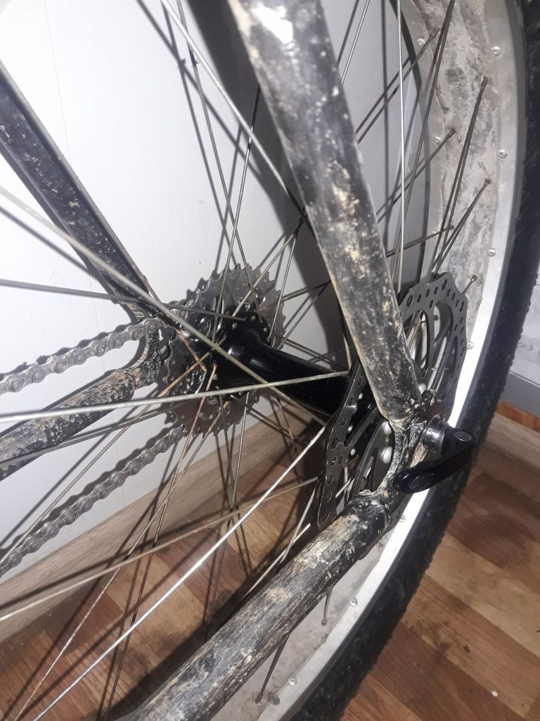 и убитую, зажеванную спицами перекидку, с которой срежу крепление под болт, вот эту часть