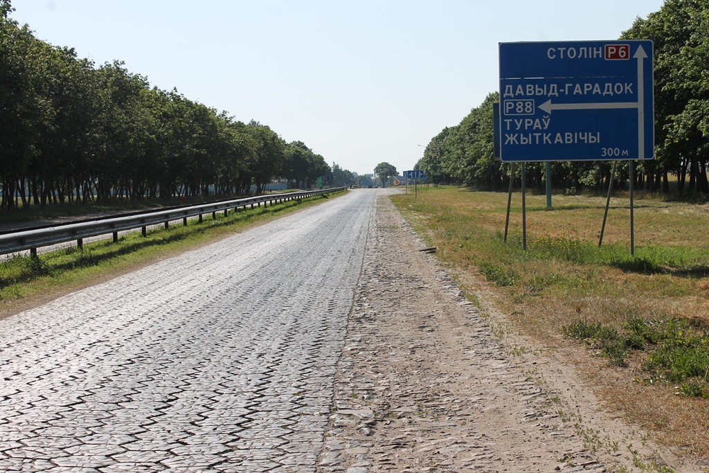 Затарився в магазині, набрав води в криниці і в дорогу. Через півгодини був на митниці. Прикордонники питали за маршрут і за велосипед: як їде, скільки передач, як так сам збирав? На іншій стороні їх білоруські колеги пробували жартувати: чого паспорт румунський і куди родимка поділась? Пройшов всі контролі і погнав, але недовго. Асфальтована траса йде в Іваново, а я звернув напряму на Пінськ, понад Дніпро-Бузьким каналом. Там гравійка з важким піском. В селі попросив води. Я говорив українською, хазяїн білоруською, але різниці між нашою мовою майже не було.