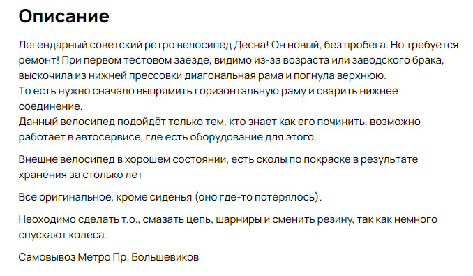 Недавно еду поздно по Петроградской стороне, совсем темно уже, только тени редких прохожих вдоль старых домов за кустами мелькают. Слева замечаю ползущий по тротуару силуэт на дамском ситибайке (показалось что все-таки современном), и слышу, как оттуда же женский голос кому-то удивлённо говорит: "Так классно на больших колёсах ехать!"