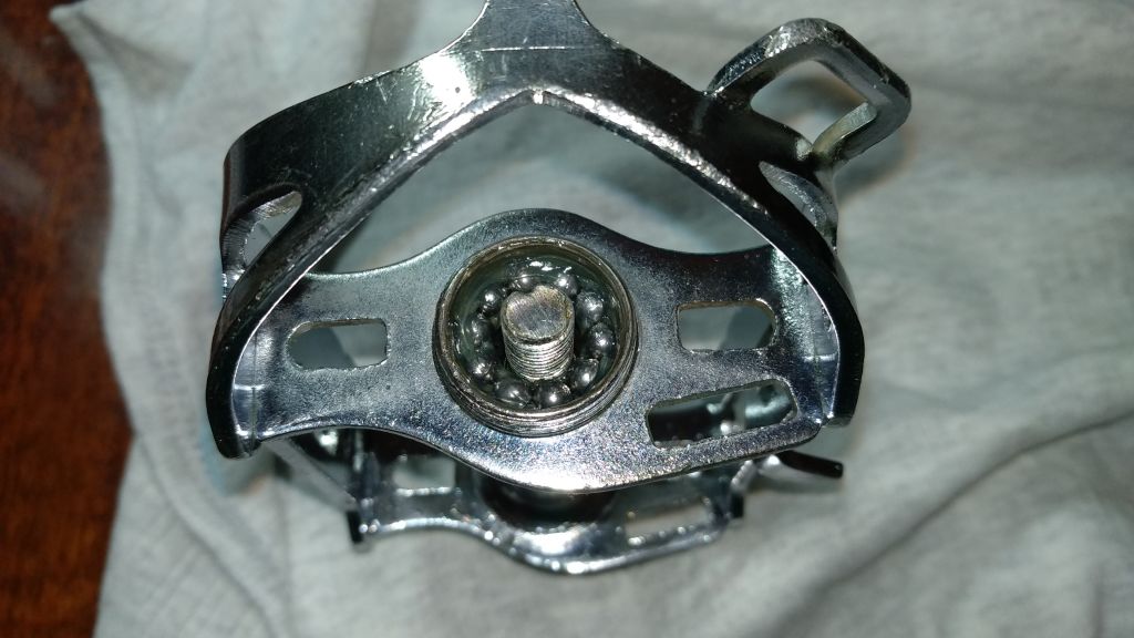 Корпус педали гремел на каркасе. Накернил и немного расклепал выступающую часть. Хрома там уже не было( Надеюсь таким способом я ничего не испортил