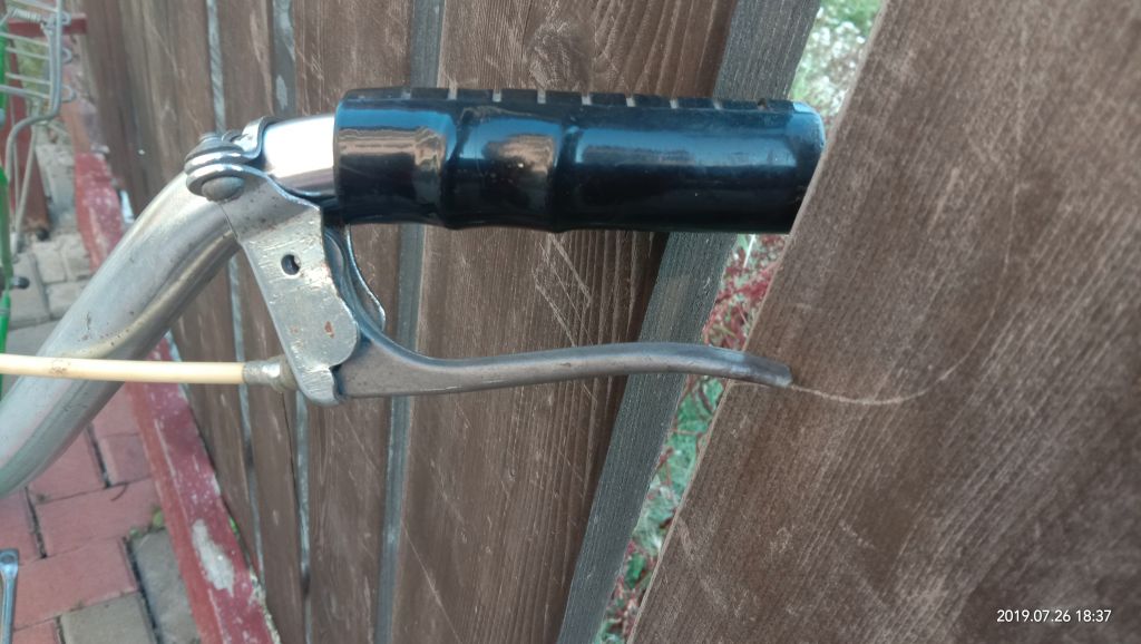 Хотел поставить передний тормоз с салюта на урал, но не подошли, колодки  в самом верхнем  положении получились ниже обода. Примерил с туриста — оно! Усатого клюва и тормозной ручки под рукой не оказалось. Позже поставлю