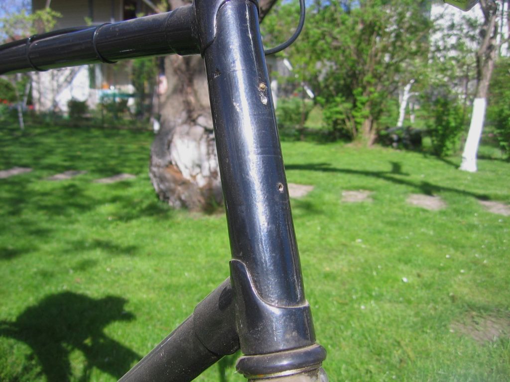 Лет 10 назад из валявшейся рамы В-143 хотел сделать паф. Ну и раму сделал — привёл в порядок и рост ей устроил, кажется, 63. Если не ошибаюсь, вставка в рулевую вварена, а подседельную — впаяна на буже. В шток вилки — впаяна.
