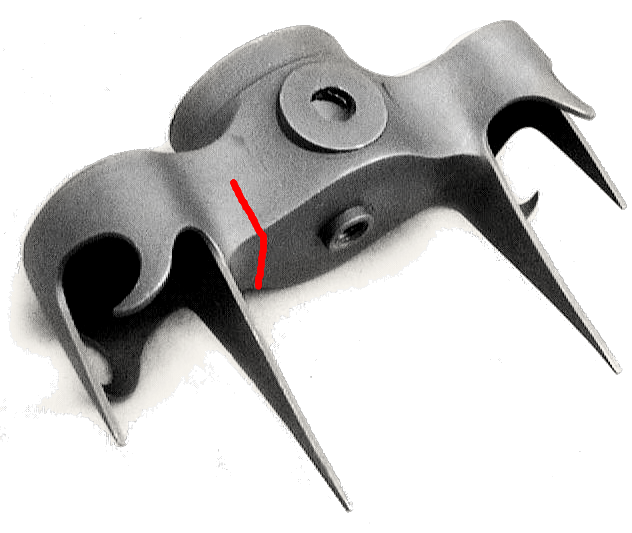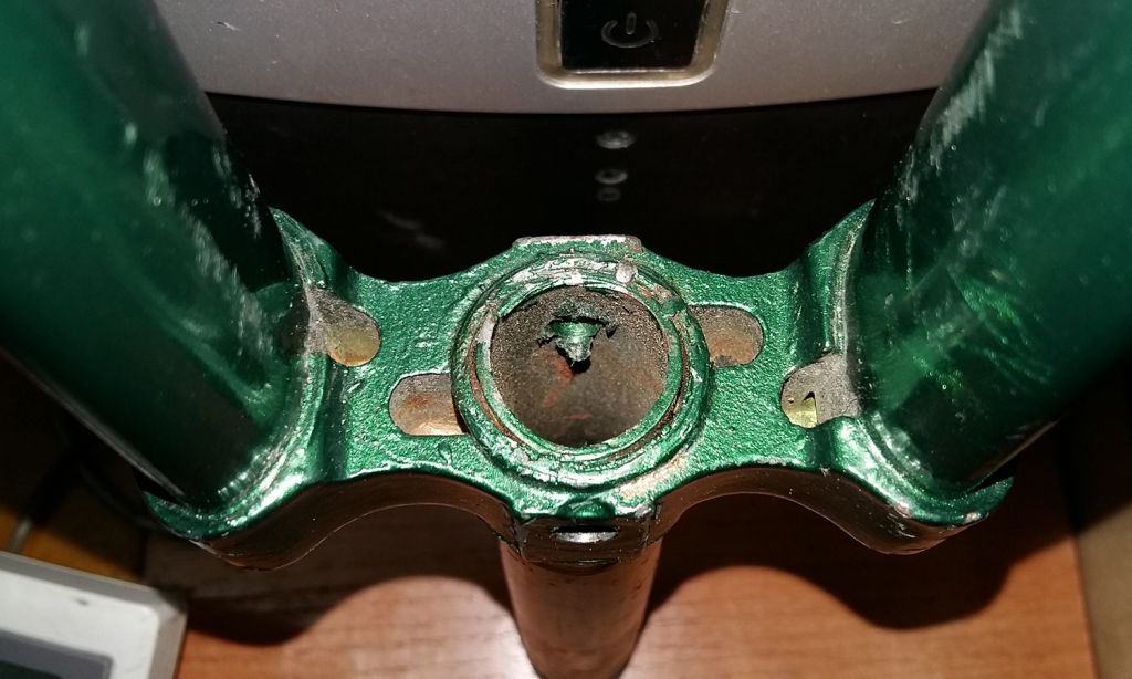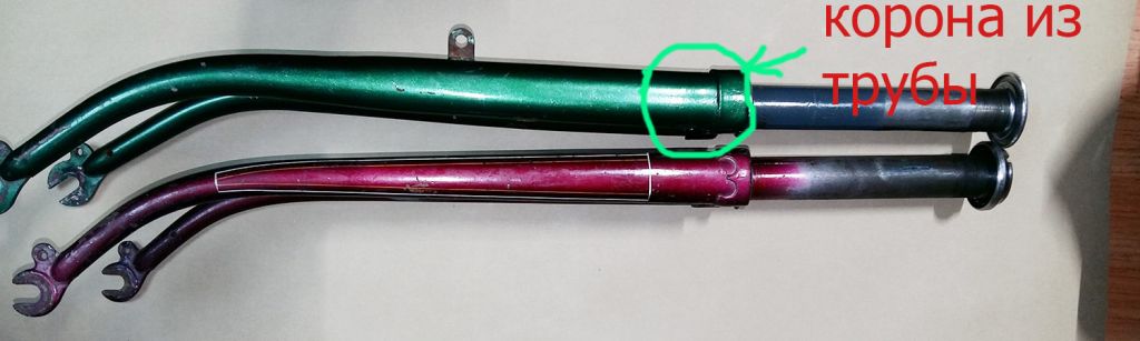А ремонт того, что есть — это просто сварная из двух половин очень подходящей стали корона. Причём основную связь будет обеспечивать паяный шов между штоком и "половинами" короны. Кстати, что будет, если на дорожнике, например, возить картошку с такой трещиной в вилке?