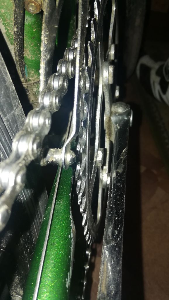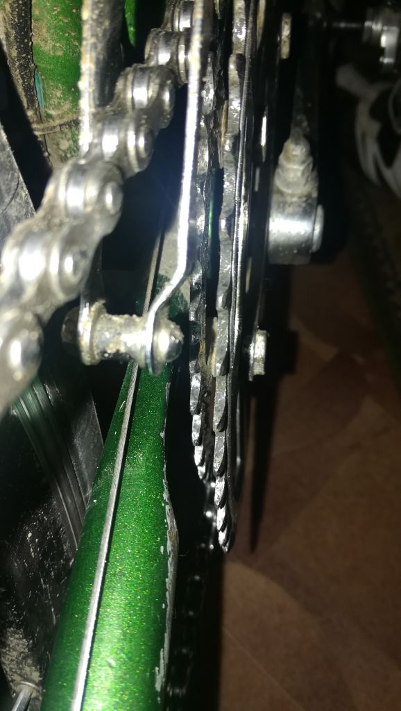 Как-то так, это крайние положения, но на ходу эта кривизна в пределах ширины рамки переднего переключателя, цепь не задевает рамку.
