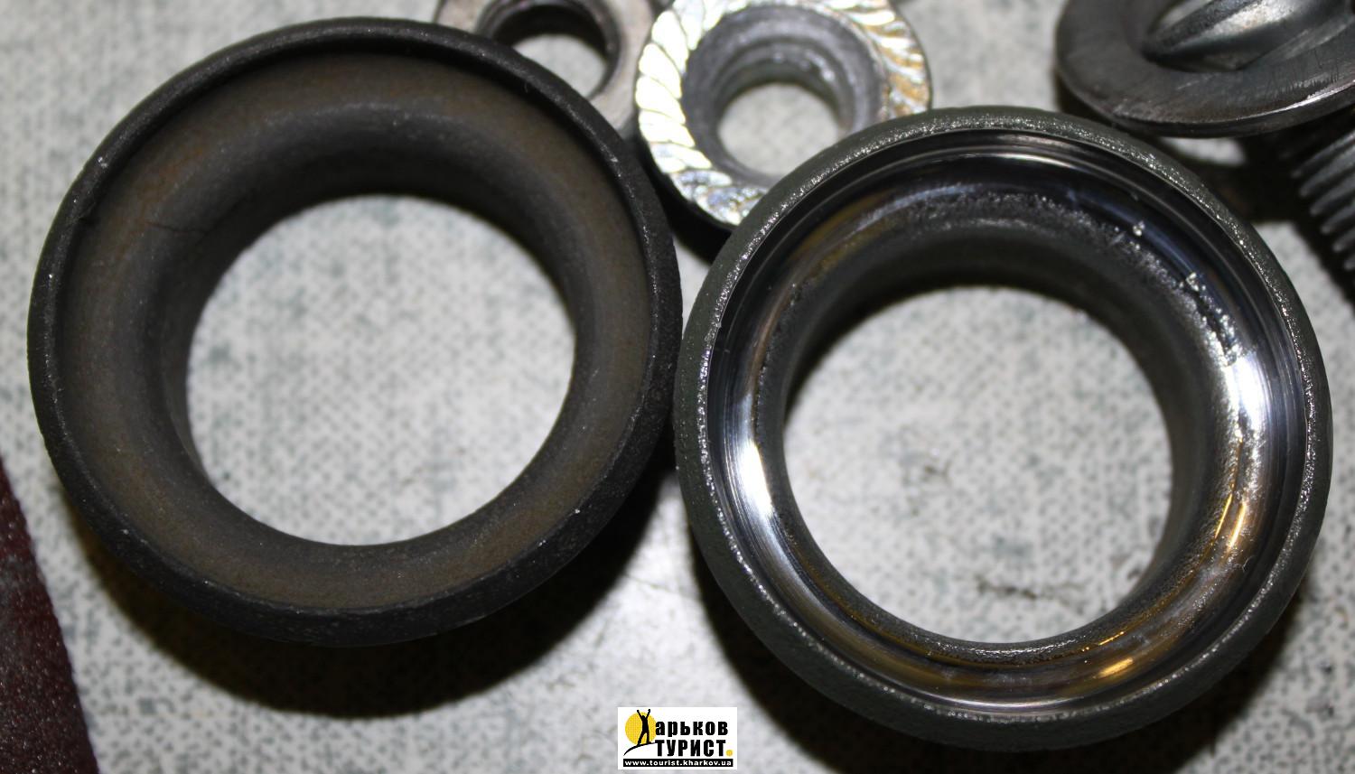 ... но в ней применяются те же подшипники, что и во взрослой. От неё надо взять только конус на вилку и расширить его посадочное отверстие с 24,5мм (обычно) до 26,4мм — это проще, чем наращивать и потом протачивать посадочное место на вилке (хотя я бы лично попробовал сначала применить фольгу — много велов ездит с ней в чашках). Видел их в продаже в магазине отдельно. У меня есть такой конус, вложил его "взрослую" рулевую: внешний диаметр одинаковый, радиус дорожки для шариков — аналогично.