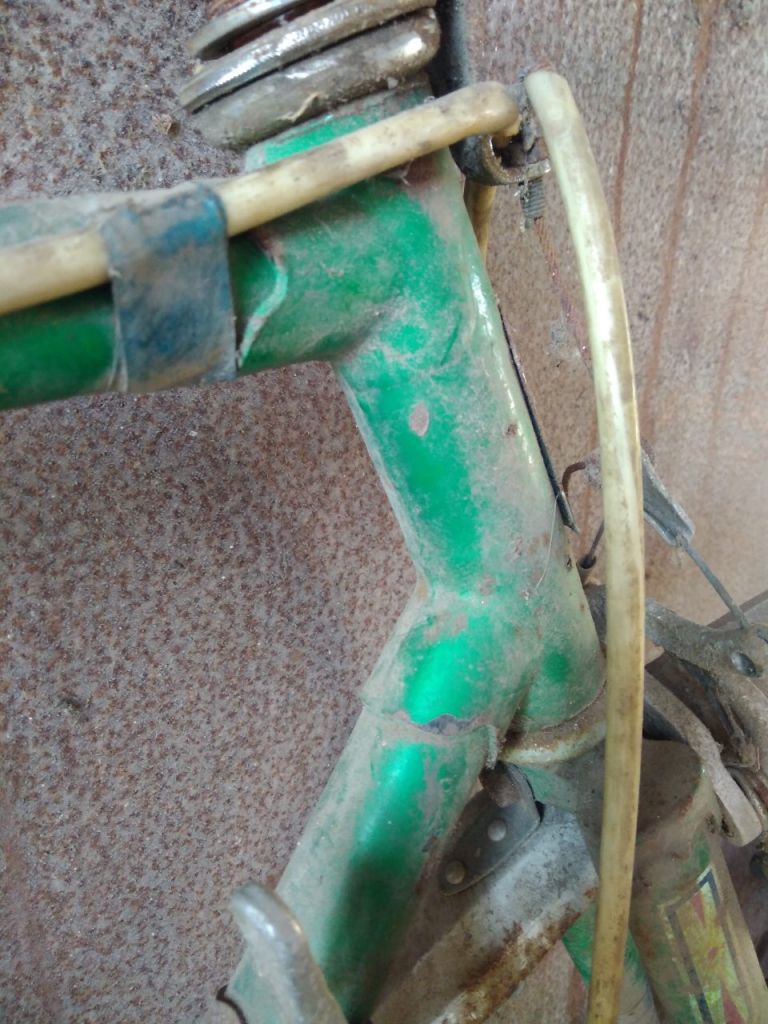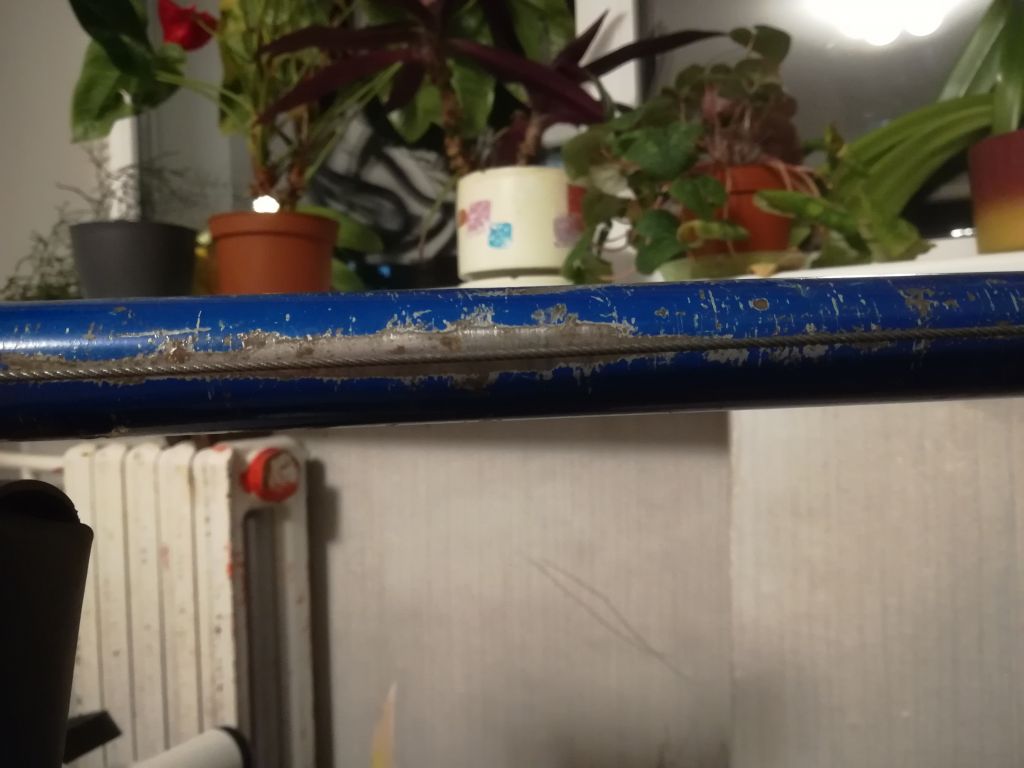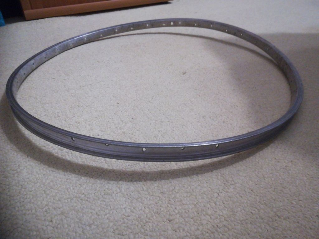 Дошли сегодня руки попробовать отчистить обод вместе где треснула сварка. Если уж в утиль, то можно для начала отчистить, а потом попробовать сварку и если не получится, то тогда будет куст смородины держать))