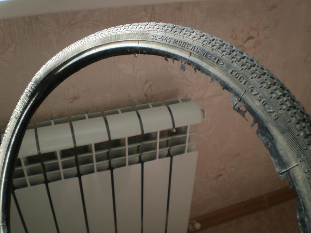 Думаю, что большинство советских дорожных шин умерло от хранения в спущенном, установленном на велик виде, причём велик неприменно должен много лет простоять где-нибудь прислонённым к стене, ну и зимой желательно что-бы за сорок морозило. img/ag
