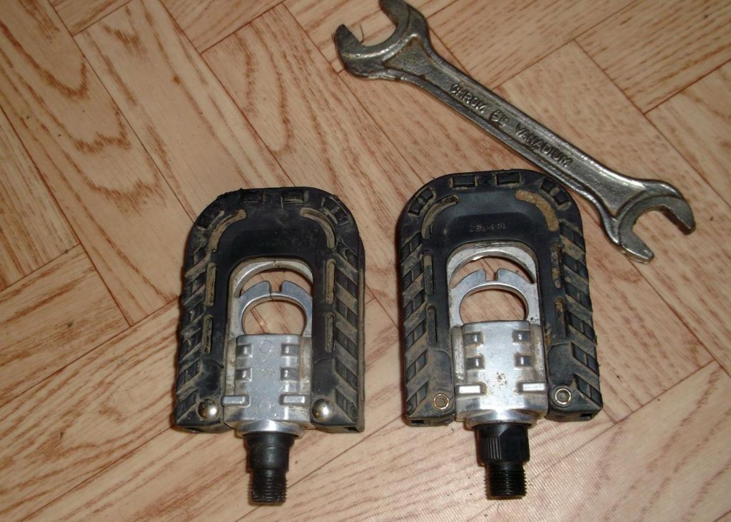 Таким образом можно при ограниченном бюджете "растянуть" комплект складных педалек на два вела. Резьбу перерезать только что придётся. Или ось педальки переделывать, что посложнее.