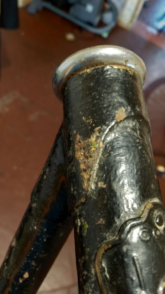 Дальнейшие действия по раме — нужно аккуратно высверлить заклепки эмблемы, хочу нарезать резьбу в отверстиях для заклепок. Чашки рулевой пока выбивать не буду, сделаю это перед пескоструем/покраской рамы