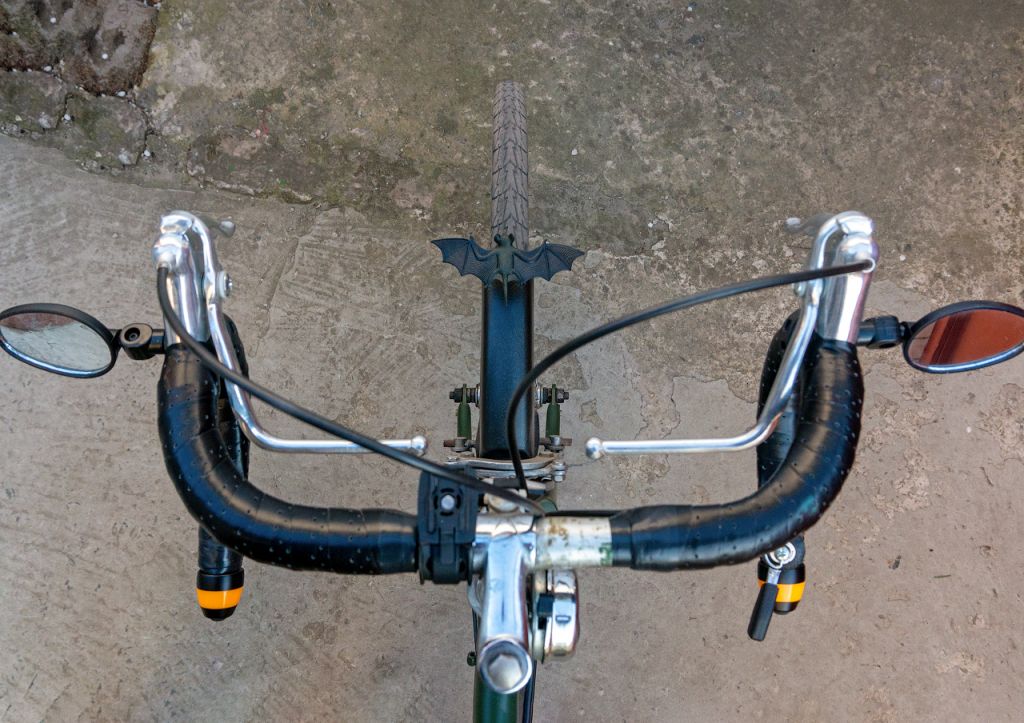 при смене хвата руля приходится перенастраивать зеркало, что не есть гуд. Как вариант, я придумал использовать 2 зеркала, оба слева, каждое настроено на СВОЁ положение: для хвата снизу, для хвата  сверху. Я так обязательно попробую!