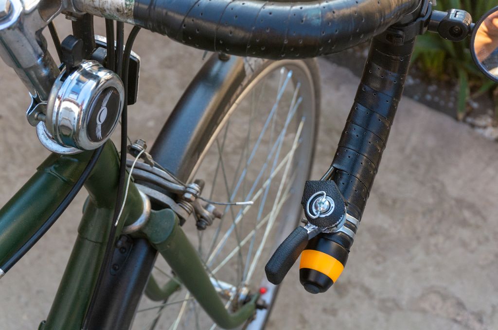 Вид от первого лица. Тросики не сильно, но мешают — данная конструкция тормозных ручек не позволяет спрятать их под обмотку.