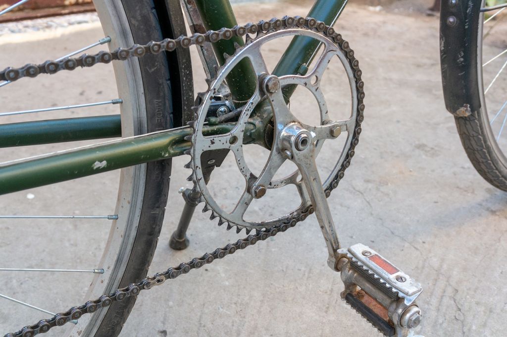 Звезда передняя 51 зуб + Шатун Это ж сколько лет уже этой звезде? Вон и хром отлетел, а она всё крутит и крутит. Хотел бы я восстановить это дело, да не знаю как. Из баллончика хромировать только хуже делать. Была идея сделать намотку из ленты для мотоциклетных труб — было б зачетненько. Пока оставил, как сесть. Вторую звезду я попробовал на 42 или 43 зуба (не помню)... решил, что или к ней привыкать и подгонять задние или к большой и подгонять. Решение вы моё уже знаете! Снял попутно и переключатель, манетку, тросики. Экономия 300 + грамм.