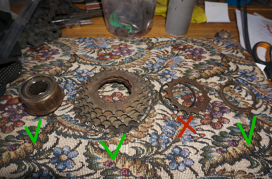 На фото отметил звезду с 16 зубьями, которую ( ) пришлось удалить, потому что моя перекидка ХВЗ не работает на диапазон 7 звёзд — она рассчитана на 5, максимум 6. Нужно было чем-то пожертвовать.