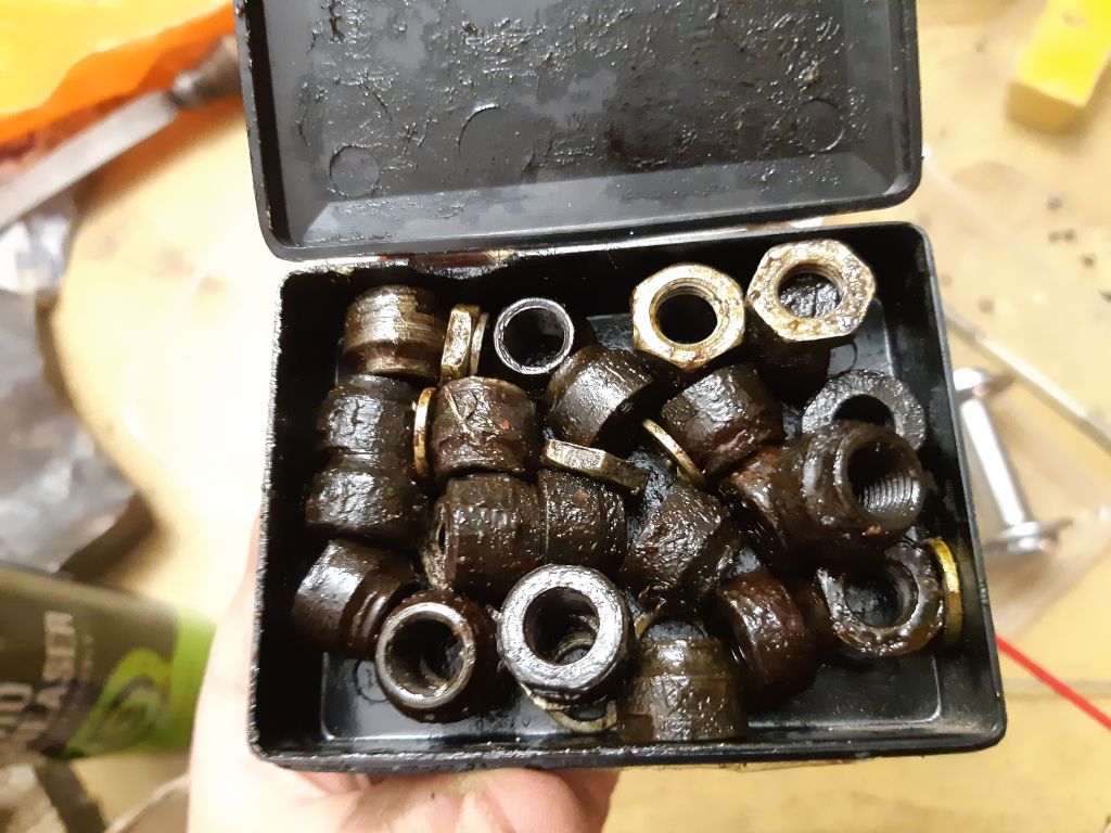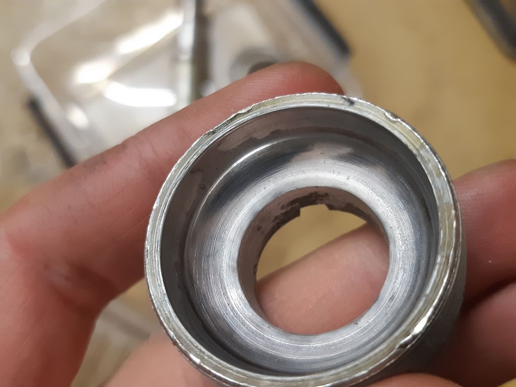 Начал собирать — и тут возник вопрос. Резьба на чашках короче. И если на правой не критично, то на левой контргайка буквально парой витков держится. Хотя резьбовые чашки честно взяты с ХВЗ-шных складов еще во времена Перестройки. От "Украины", они, чтоль? или не той системы? Еще и странность при затяжке — не могу поймать момент — то люфтит, то чутка закусывает в одном месте.