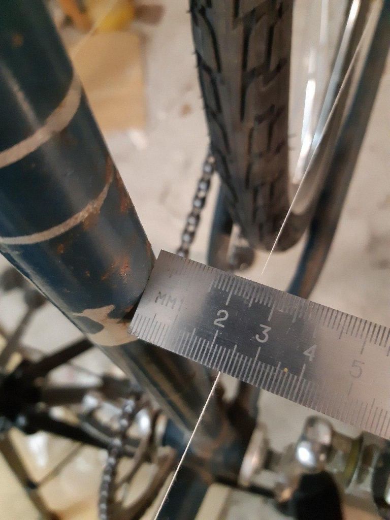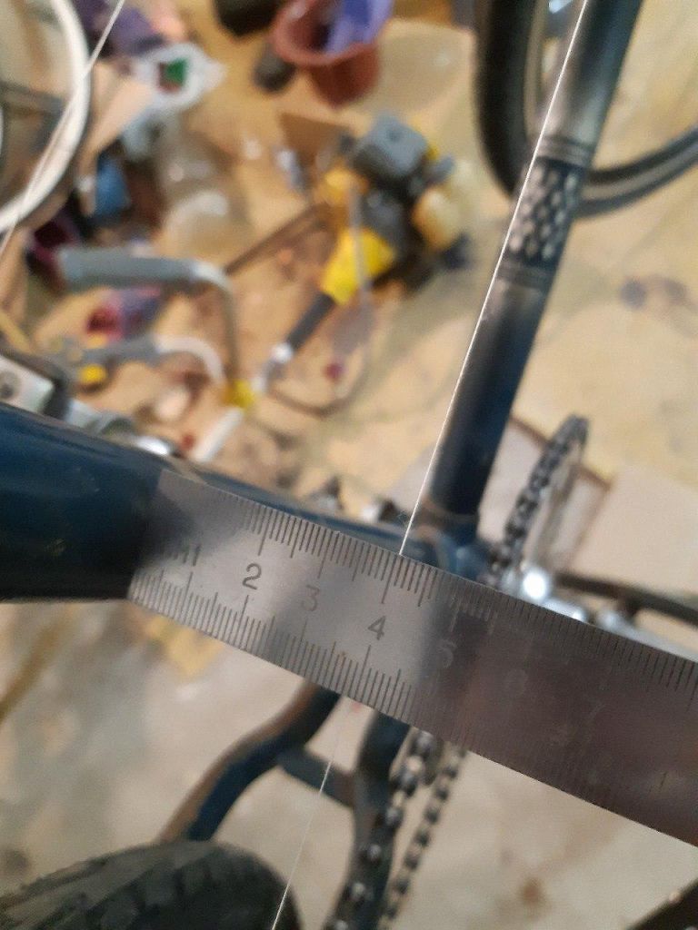 Посмотрел еще раз со всех сторон. Присмотрелся к раме. Подумал "ну та не может быть. это ж мой 114. он же ровный. он же самый любимый в гараже. он же.... стоп.... я ж ему никогда нитки не примерял. именно потому, что это ж самый правильный и любимый и вообще боевой папелац половины детства". Бегом за мотком шелковой нити.