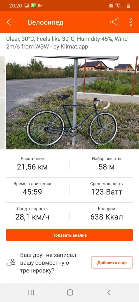 Запустил страву и записал стандартную послерабочую разминку (если я не пилил на работу и назад на велосипеде, конечно — потому как то 50 км в обе стороны и не сильно разминаться потом хочется, дома то еще забот хватает).