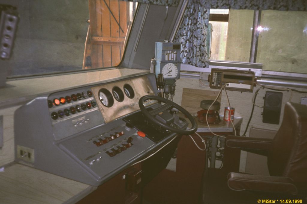 Кабина электропоезда ЭД2Т с рулевым колесом ВАЗ-2108 в качестве штурвала контроллера машиниста. Изделие штатное, даже бумажка РЭЗ-RER еще отвалится не успела