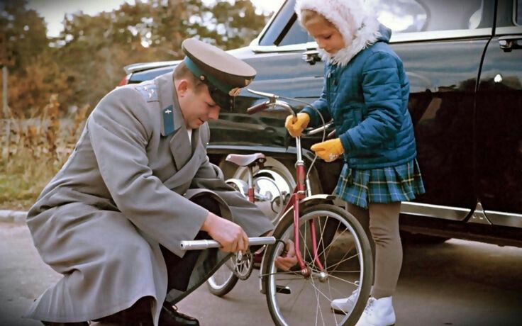 Не могу согласиться. Колеса разные — 16-ть спиц Ветерка против 24-х у того что на снимке. Рулевая колонка кажется разной. Другая звезда системы. Насос в руке — постановка для снимка? Надеюсь поймете правильно. Не спорю, просто любопытно.