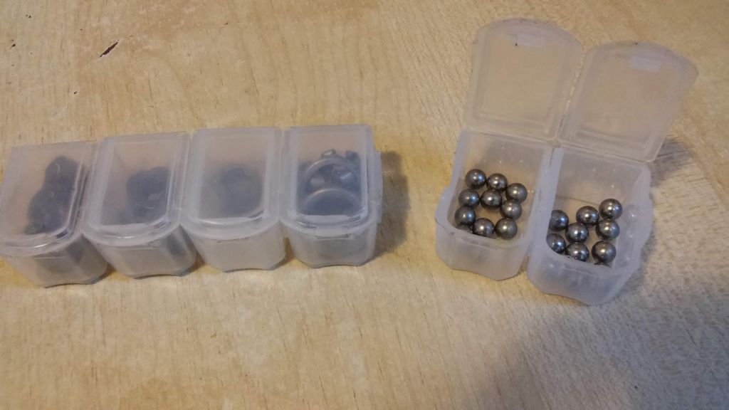 Недавно прикупил в "Сільпо" в отделе "НЛО" парочку прикольных мини-органайзеров. Шикарная вещь для хранения вместе и при этом раздельно всякой мелочевки. Удобно, что ячейки можно соединять в любых количествах, группируя запчасти по проектам. Для шаров от подшипников — вообще идеально. Вот, например, на фото справа — шары из каретки "Уралёнка", который (наконец-то!) разобран для покраски, а слева — мелкие запчасти от педалей, которые на днях перебирал.