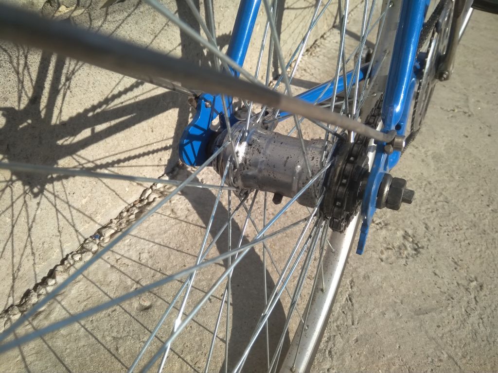 Но смилуюсь над вашей нервной системой) ловите фото с улицы! Нашел звезду на 14зуб, прифигачил ее тут же на парковке — и вот!!!! вельчик едит так как мне надо! Минус один шаг к финалу)))