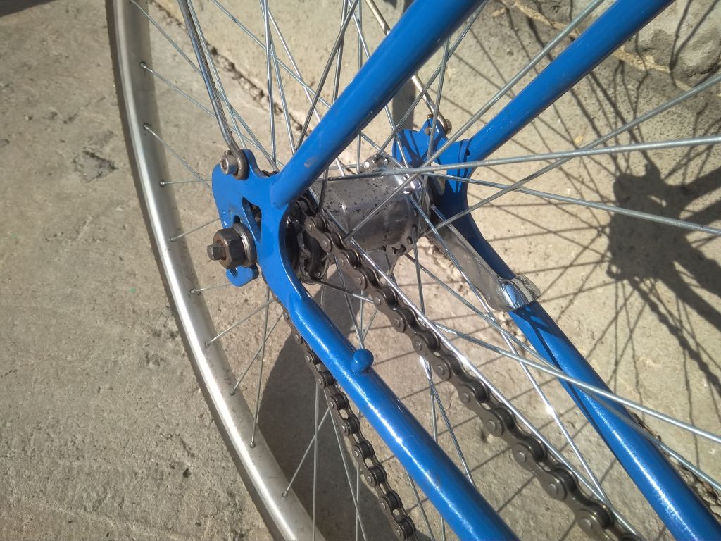 Велосипед ещё далёк от финала — нет тормоза, колпачка педали, трансмиссия не готова. Чёрный замок седла..ну тут ещё простительно.