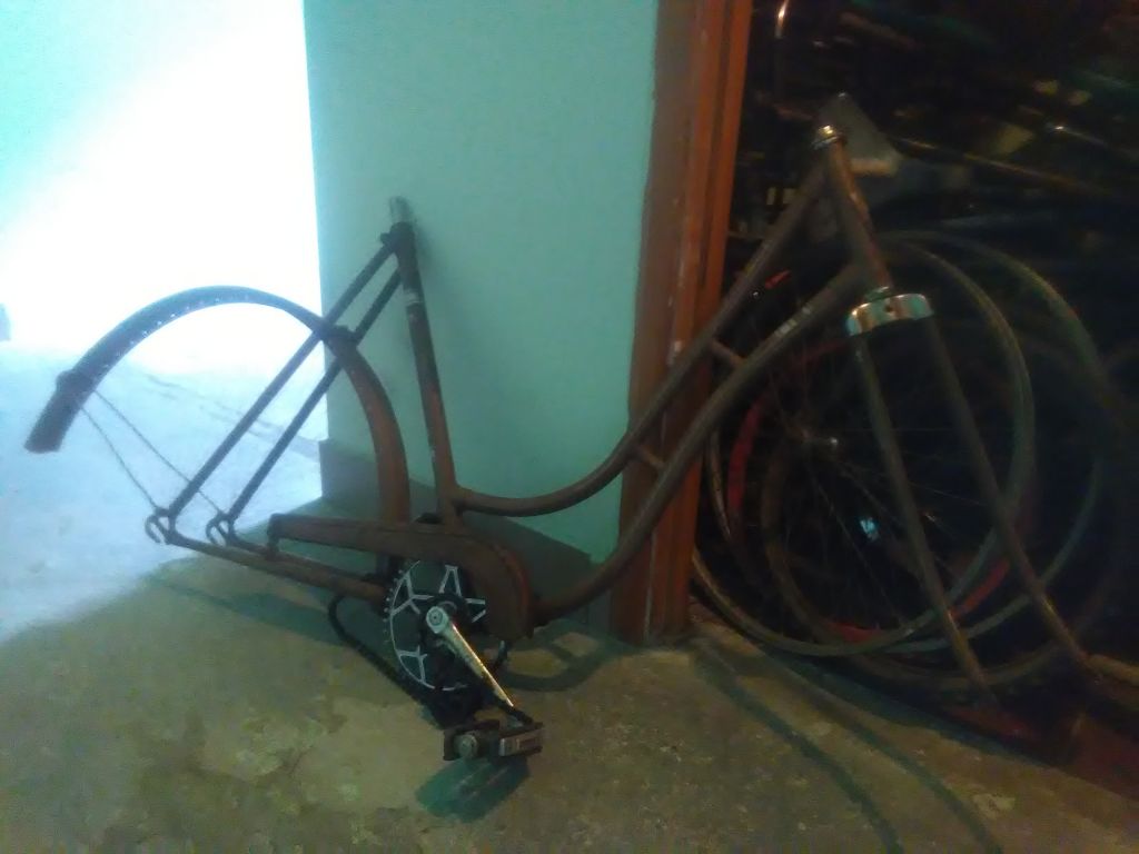 Так, вроде бы, под 28" колёса. Вилка родная есть. Вот если из него дамку попробовать собрать? Краем глаза видел, что есть несколько проектов на основе в-25 / В-22. Не сильно ли тяжёлым будет велосипед?