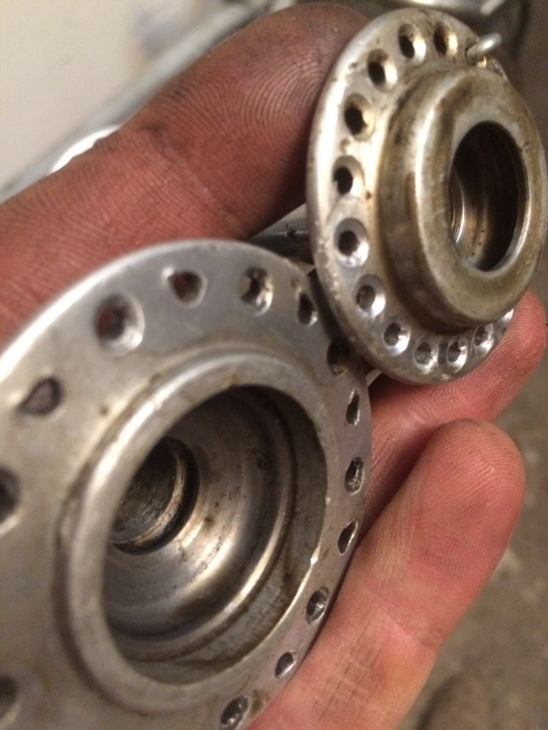 Да, втулки всех "чемпионов" В-551 идентичны втулкам поздних 541 и 542 с той лишь разницей, что у 542 и 541 оси на гайках, а у "ч" на эксцентрике. Фланец там низкий дюралевый. У "ч" не только колодки но и тормоза другие. Тормоза — одноосевые "клещи", колодки с "усатыми картриджами".