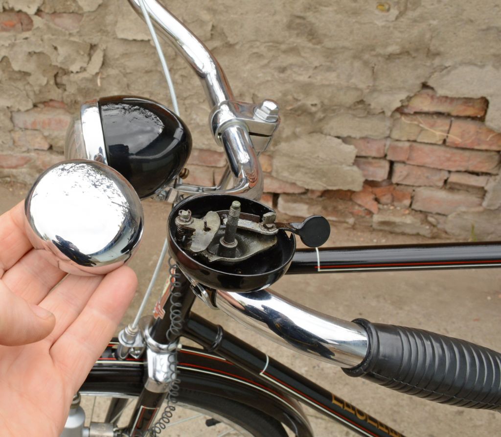 Тормозная ручка в небо смотрит, неудобно так пользоваться и травмоопасно. А звонок в те времена разве был двухцветным?