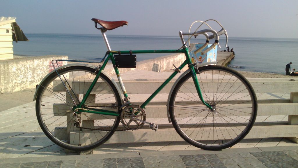 Этот длинный вынос как раз под мой рост — 191 см. В сентябре купил такой же 542-й, только он, "ослепительно сверкающий хромом", коснулся колесами земли на два года позже Вашего, в1974, бонки уже другие. Завидую Вашему терпению и последовательности, чего мне не всегда хватает. Я, как только пришел вел, тут же его собрал, нетерпелось увидеть его в сборе, потом разобрал.. Для ТО, втулок, каретки, колонки, купил новые камеры, на родных повыпадали ниппеля от старости,И погнал кататься, хромом займусь долгими зимними вечерами. Как же классно он едет!! По асфальту как дельтаплан, а по грунтовке идет как хороший катер с глубоким V" по волнам! Пардон, увлекся.. Руль поднял на максимум, подседел пришлось поставить днинней, родного мне не хватило. Сейчас он выглядит так: