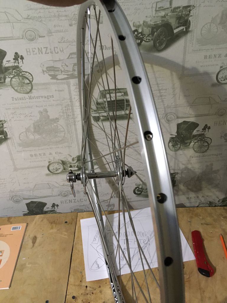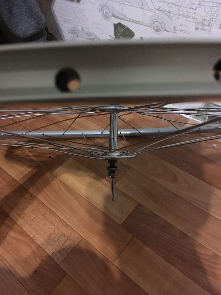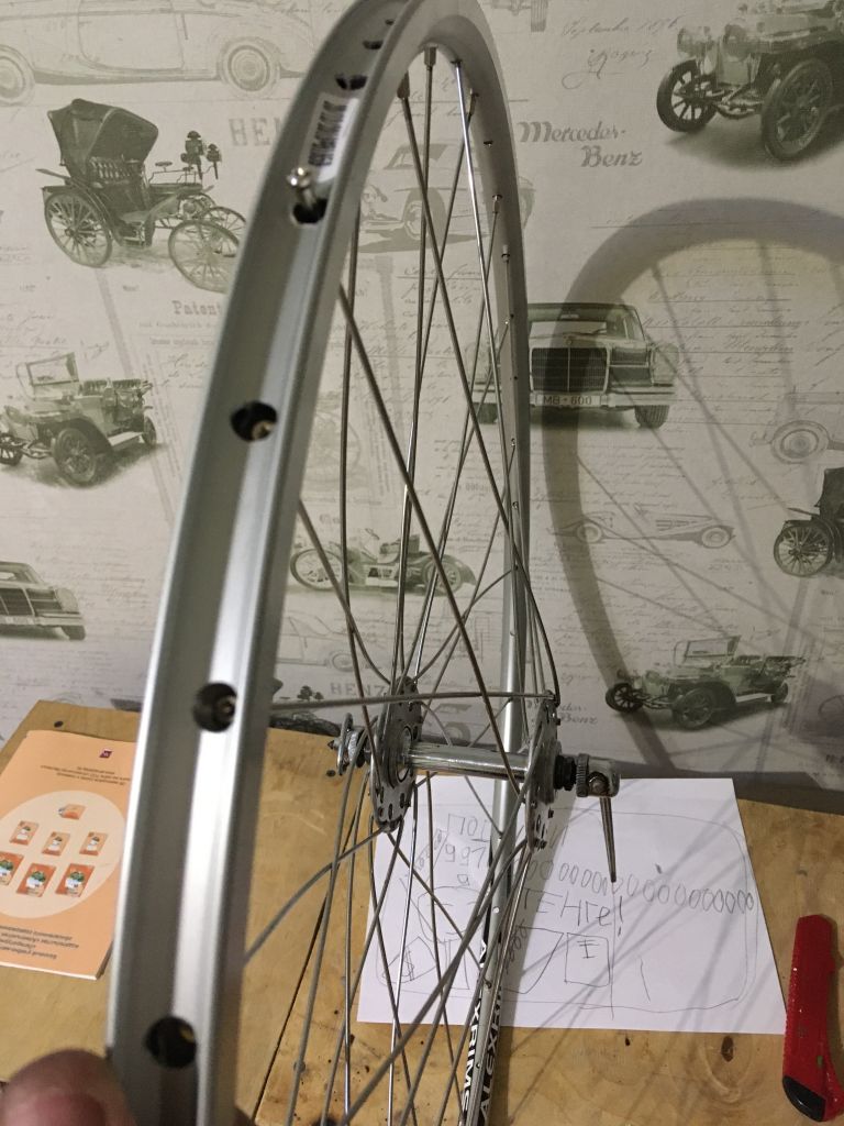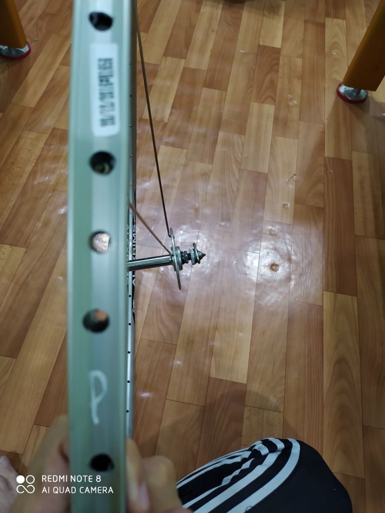 Первые спици которые ставились закручены сильнее чем надо вначале все спици надо накручивать на 1-2 оборота а потом равномерно подтягивать
