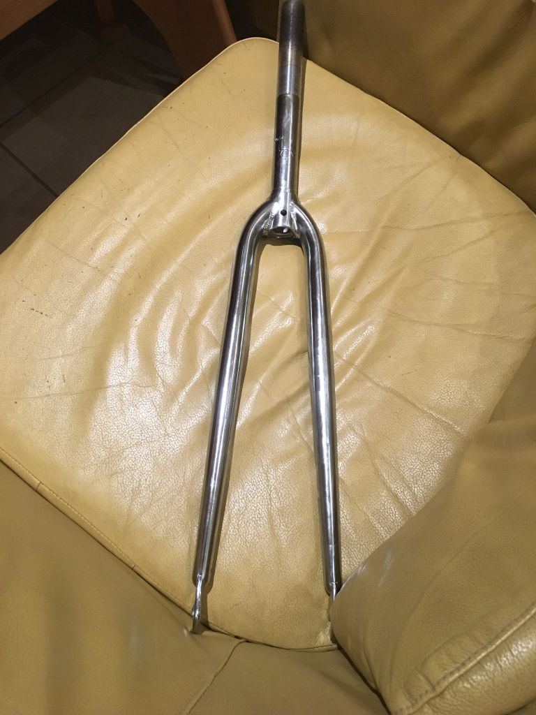 Да отличная вилка, зачем ее менять. На всякий случай осмотреть область "бульбы" на трещины. Дроп — возможно пожран заклинившей втулкой. Не похоже, что это помешает поставить колесо, т.к. этому месту, вроде, полагаются специальные ребристые шайбы.