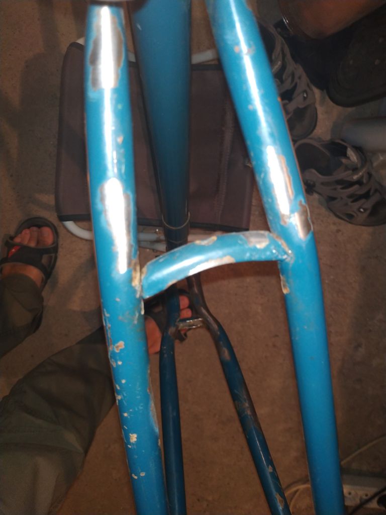 Подгибал до симметрии заднюю наклонную трубу. Кроме как разводным ключём ничего не шло ровно.