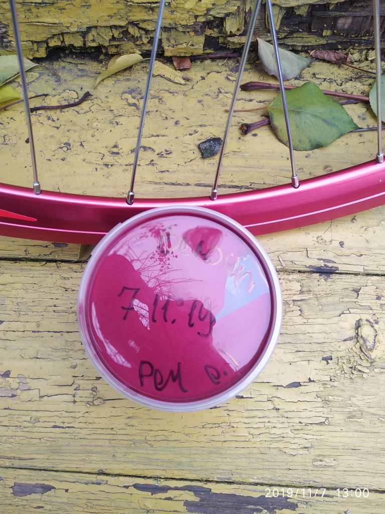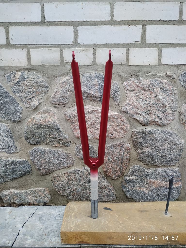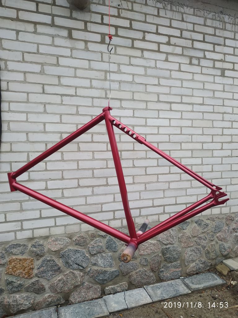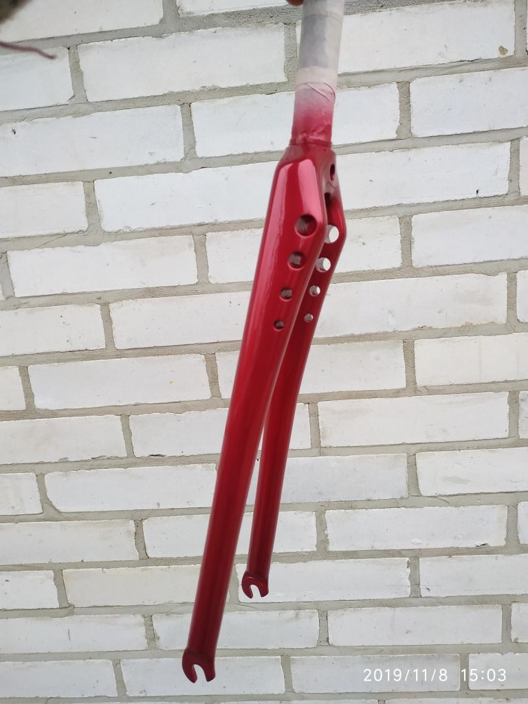 Покрасил раму и вилку. Краска -3 слоя, лак- 4 слоя.