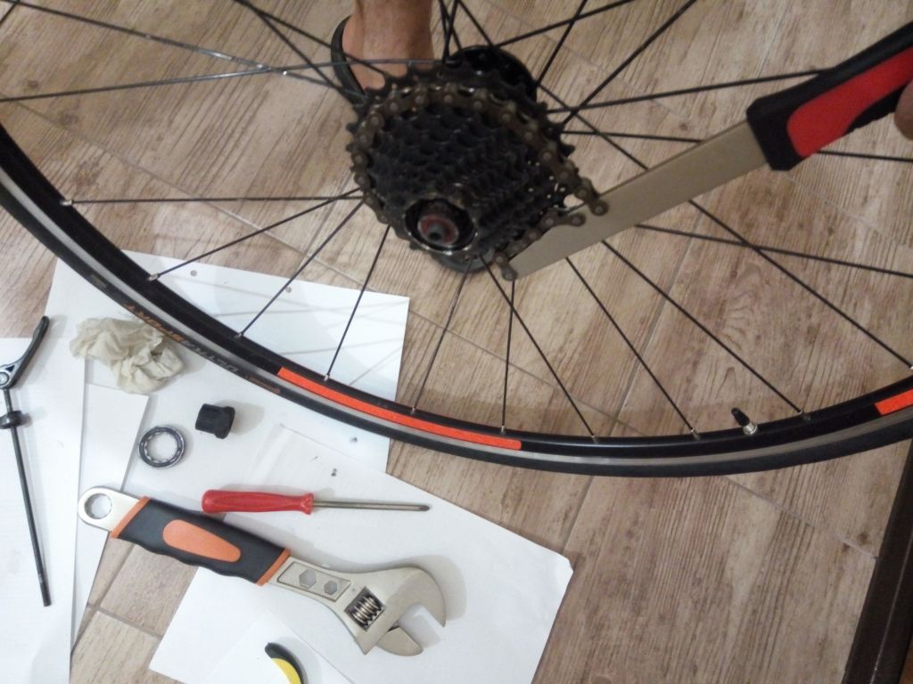 (1) вытер фрихаб. Хотел его вообще снять с втулки, говорят, собачки храповика свободного хода изредка надо чистить. Раз уж все равно кассету снял... Фиксирующую гайку скрутил, но с оси оно не хотело сниматься, вопреки премудрому видео с GCN. Забил.