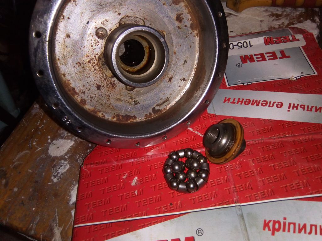 На фото так не видно, але підшипники і лівий конус блистять як вчора з заводу, тільки правий сеператор розсипався із за дикої перетяжки, але шаріки все одно як нові виглядають, правий конус і дорожка мінімально  покоцані, Ото колись робили англійці — вічна втулка фактично, якщо за нею хоть трохи дивитись.