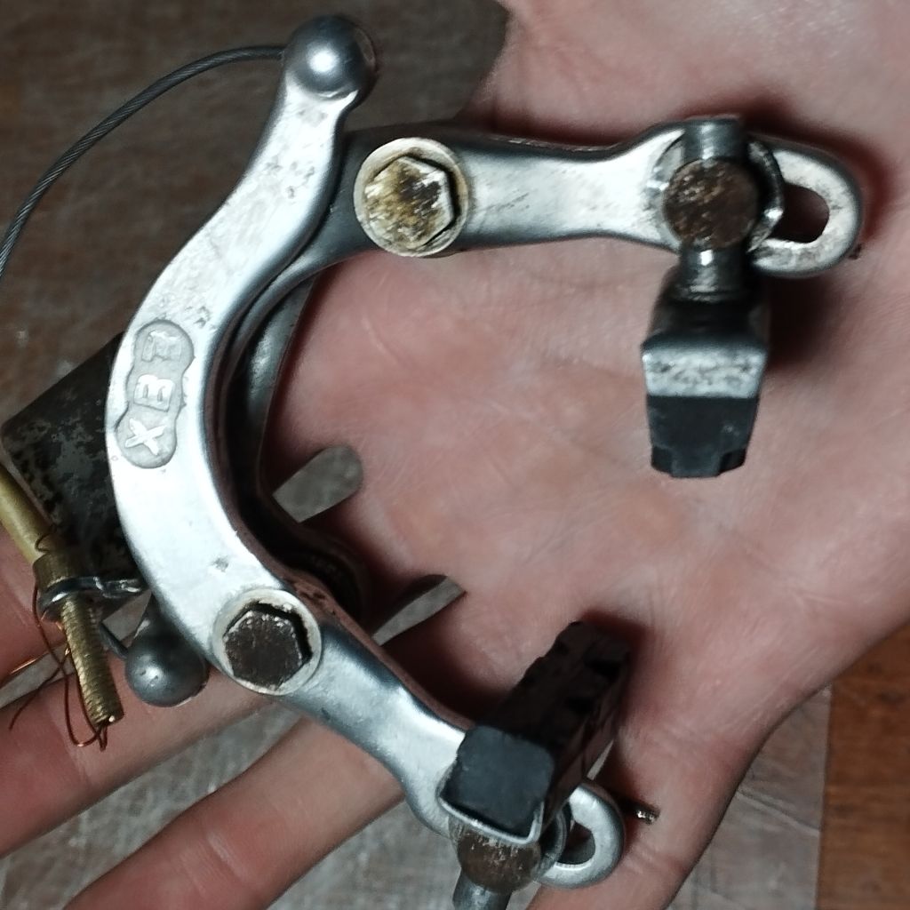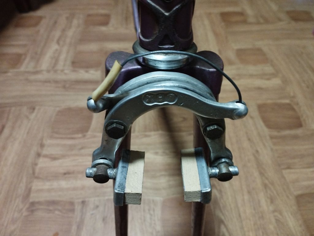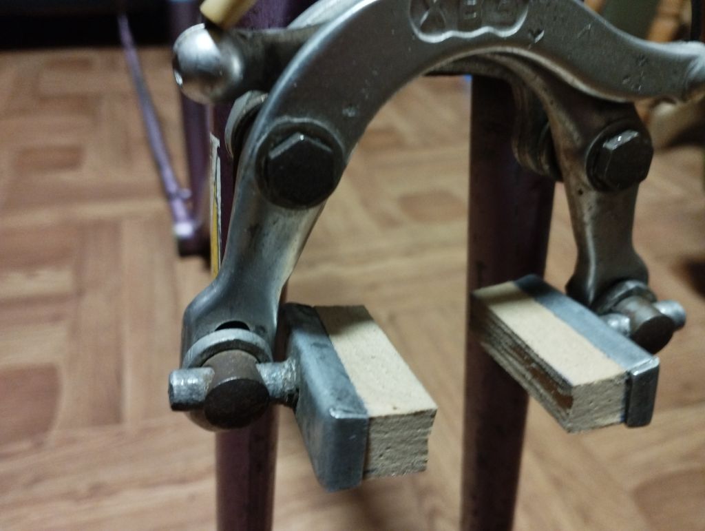 Якраз такі маю в наявності, придбав ще тоді як хотів на синій СШ ставити такого типу як на моєму фото механізм гальма але тоді не зрослось і замість поставив сучасний, спочатку більш наворочений а потім простіший бо наворочений був на грані по річу і мене згодом це трохи бісило. Колодки ( Алхонга) спробував знову поставити на наявний механізм, стали і тримаються добре ,все регулюється один момент що деформовані кільця треба провернути і ще із за того що колодки довші в розкритому механізмі вони упираються в ноги вилки але це не проблема, такого роду нюанси вчать не ставити не оригінал але це вже в області вподобань. На цьому вело хочу більше старих деталей, може навіть спробую зробити колодки із корків( другу пару можна зробити з того матеріалу що показав). Буде цікаво, торпедо+ накладки з корків, теоретично велосипед буде гальмувати плавно з затяжним ефектом не так як синій СШ ,різко і як вкопаний але мінусом отримаю більший гальмівний шлях.