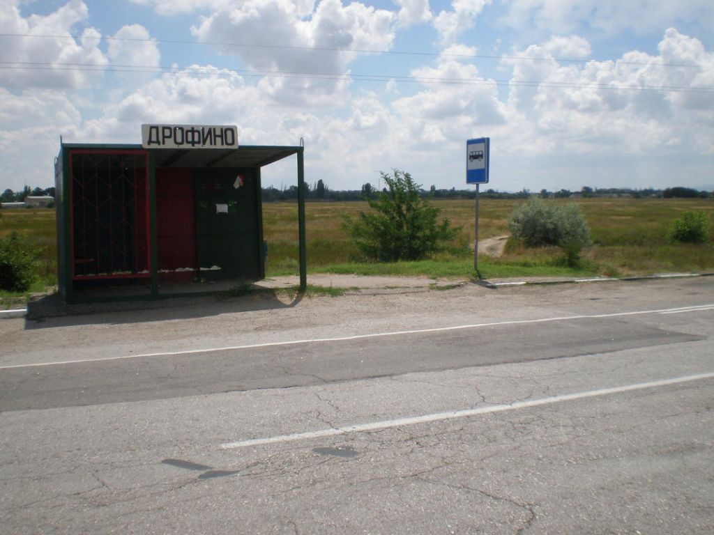 У Добролюбовки тоже устроен путепровод без выезда на "Тавриду и недалеко от него — перекресток с "Тавридой" в одном уровне: с южной стороны дорога идет на Добролюбовку и с северной на Хлебное. Тут сделали остановку и она по наружному контуру зачем-то огорожена этими бетонными ограждениями: