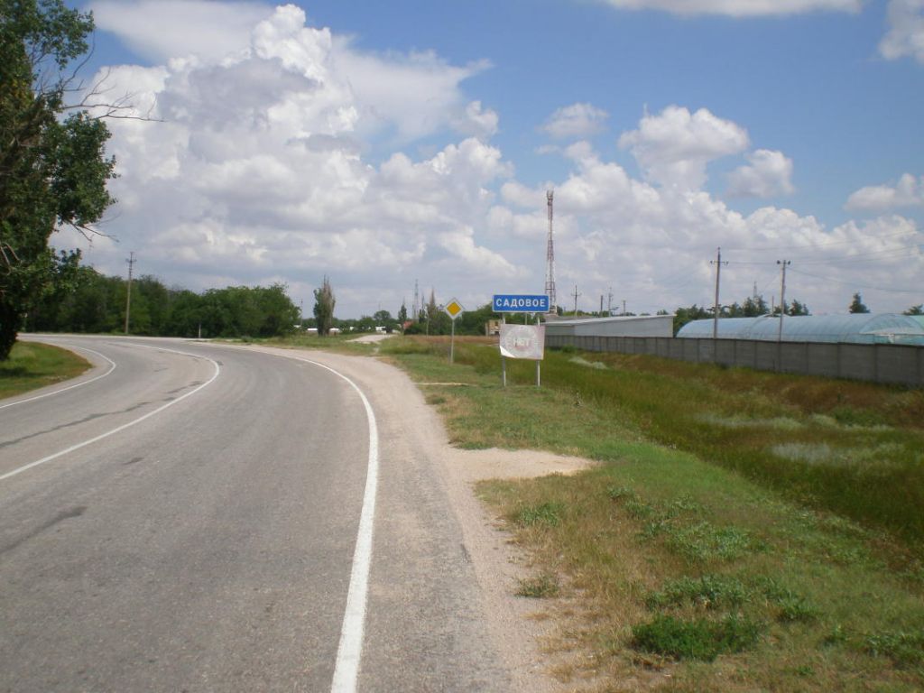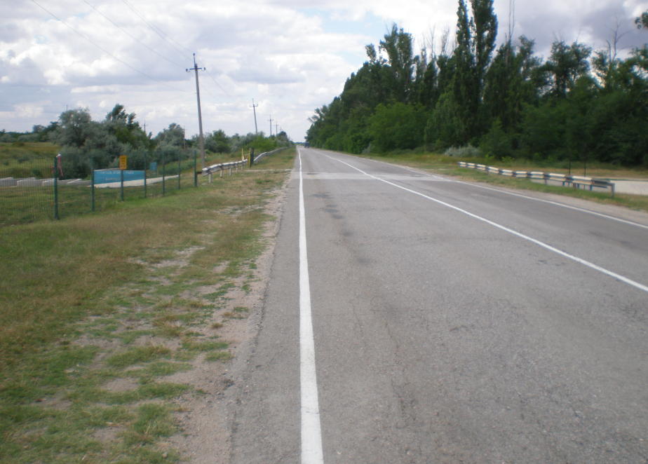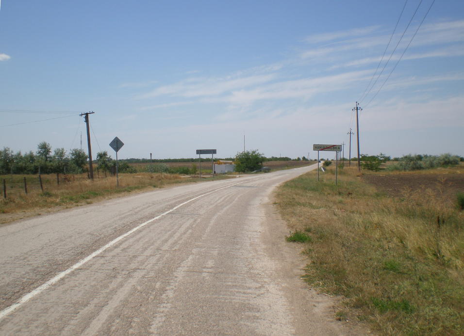 Впереди — путепровод про который идет речь, причем и тут тоже нет никаких признаков съезда с него на автотрассу "Таврида", а в то же время дальше есть просто выезд из села на нее в одном уровне, так же как из Васильевки где я проехал:
