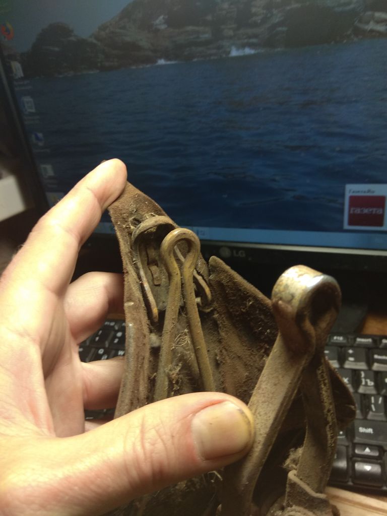 Эхо войны дорогие коллеги, вот мысок седла в текущем состоянии. Явно чего то не хватает. К коже приклепан железный наконечник с отверстием под натяжитель. А как это должно выглядеть в норме?