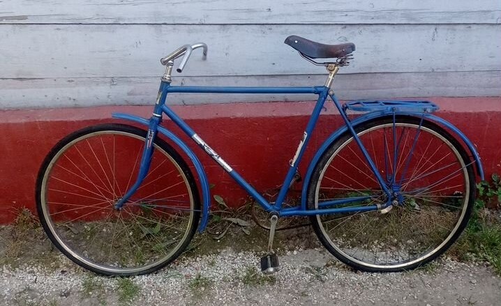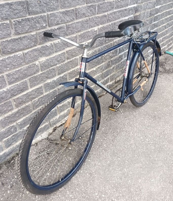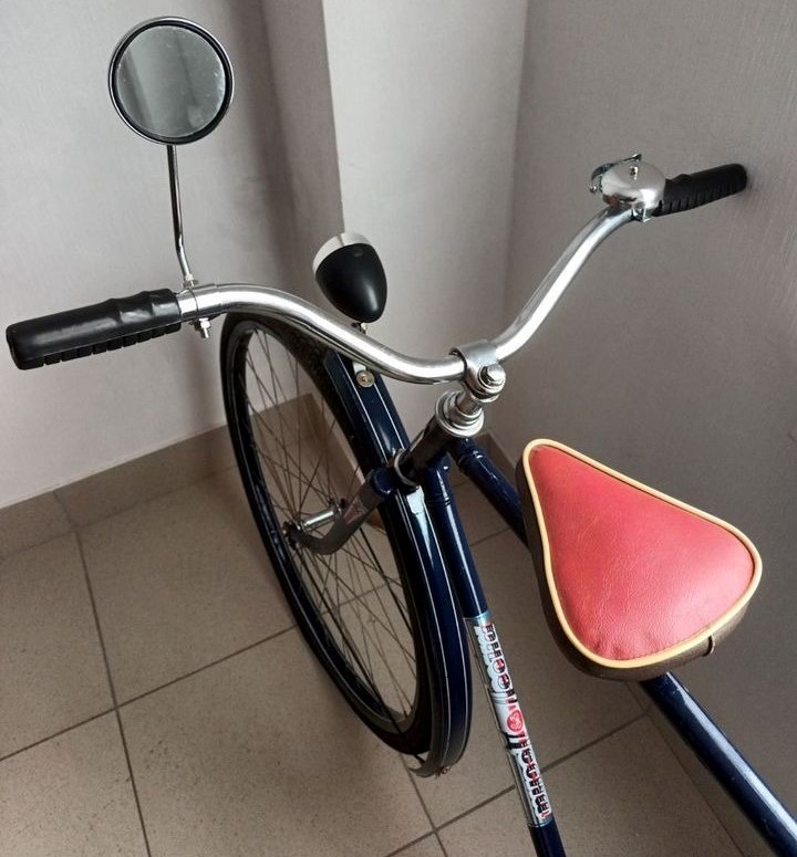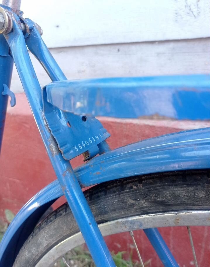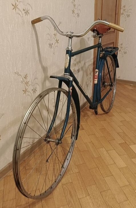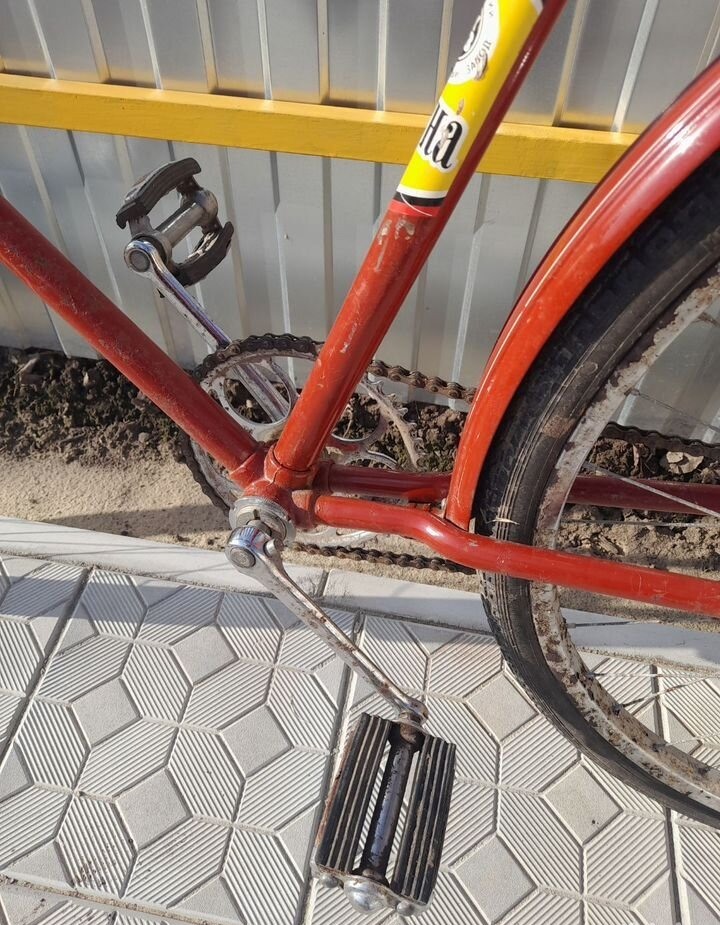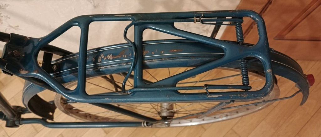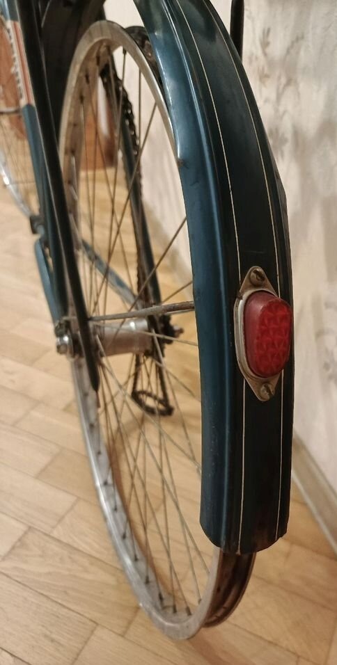 Не очень и хороший сохран: заднее колесо почти в труху, везде ржавчина. На покрытие седла без слёз не взглянуть... А ещё и педали разные. Правая, имхо, не родная.