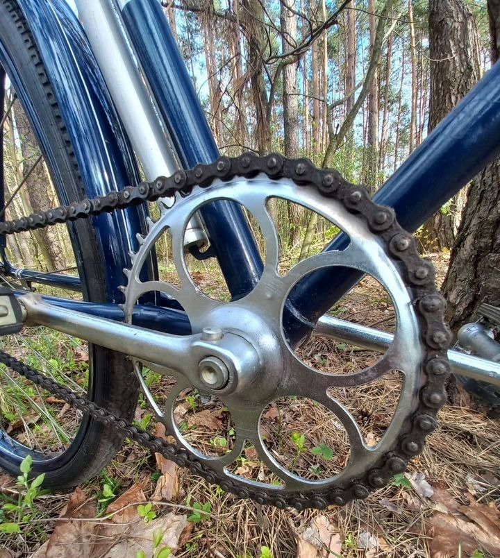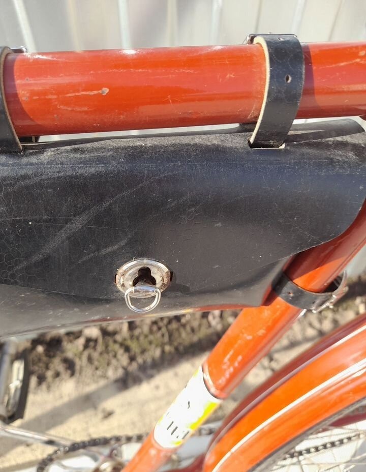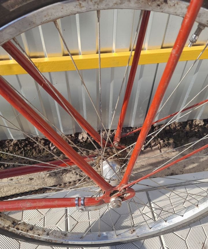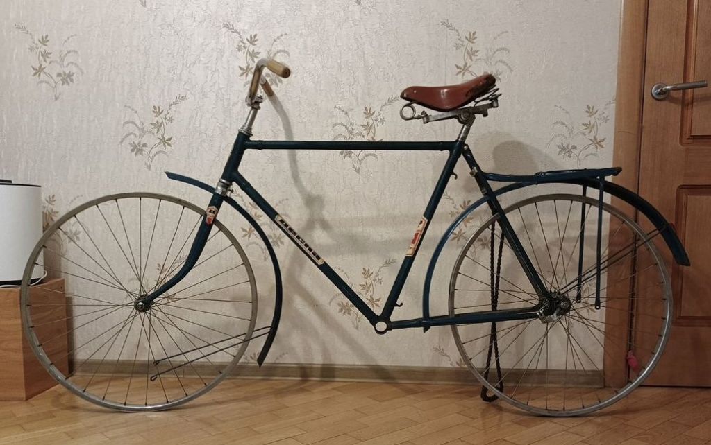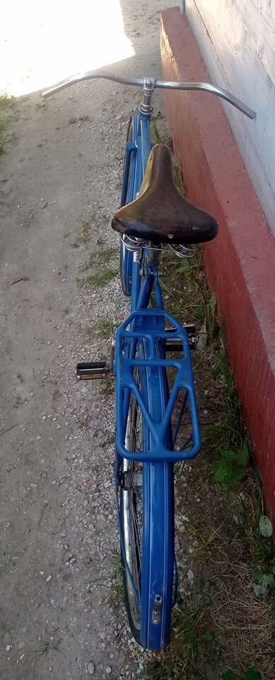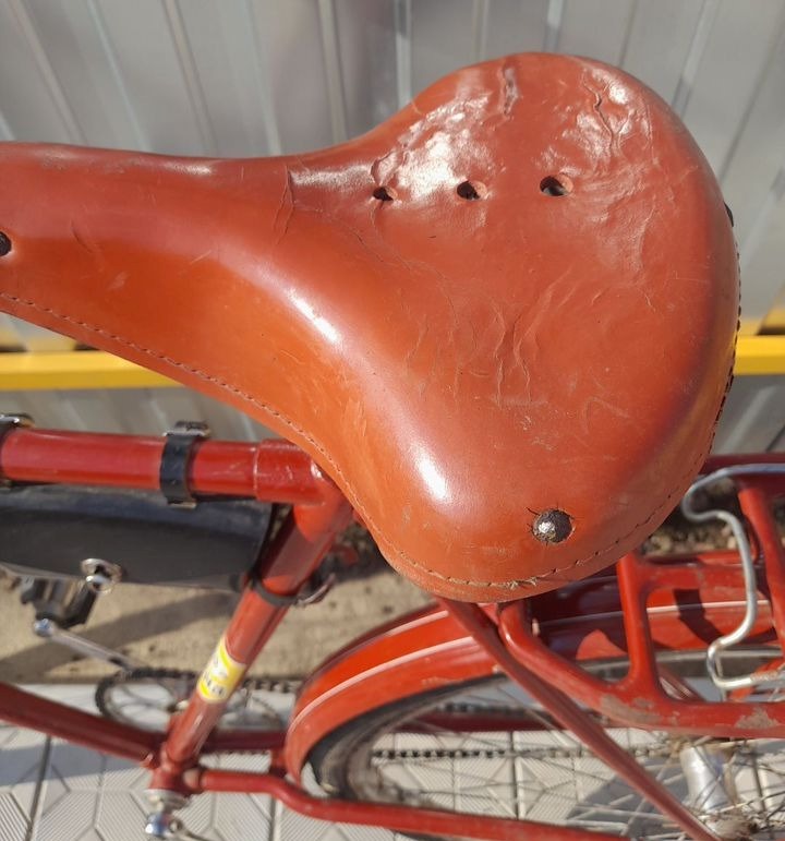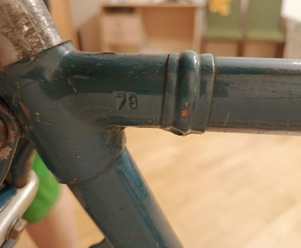 Не очень и хороший сохран: заднее колесо почти в труху, везде ржавчина. На покрытие седла без слёз не взглянуть... А ещё и педали разные. Правая, имхо, не родная.