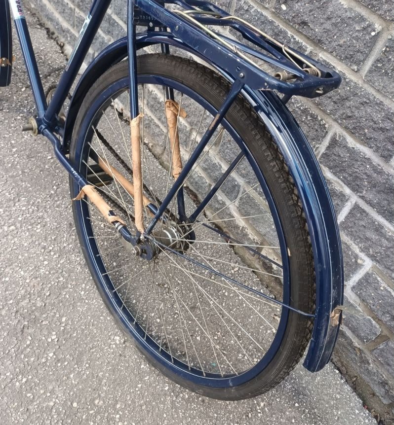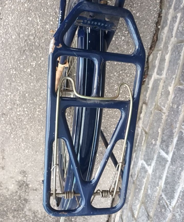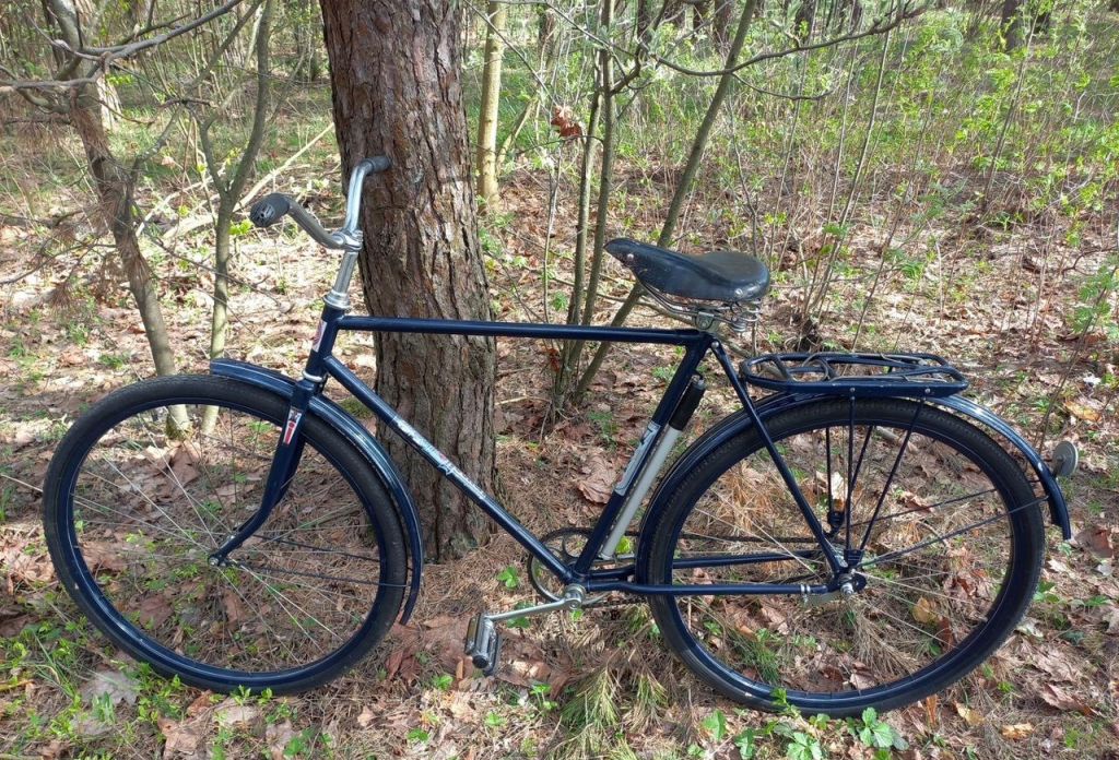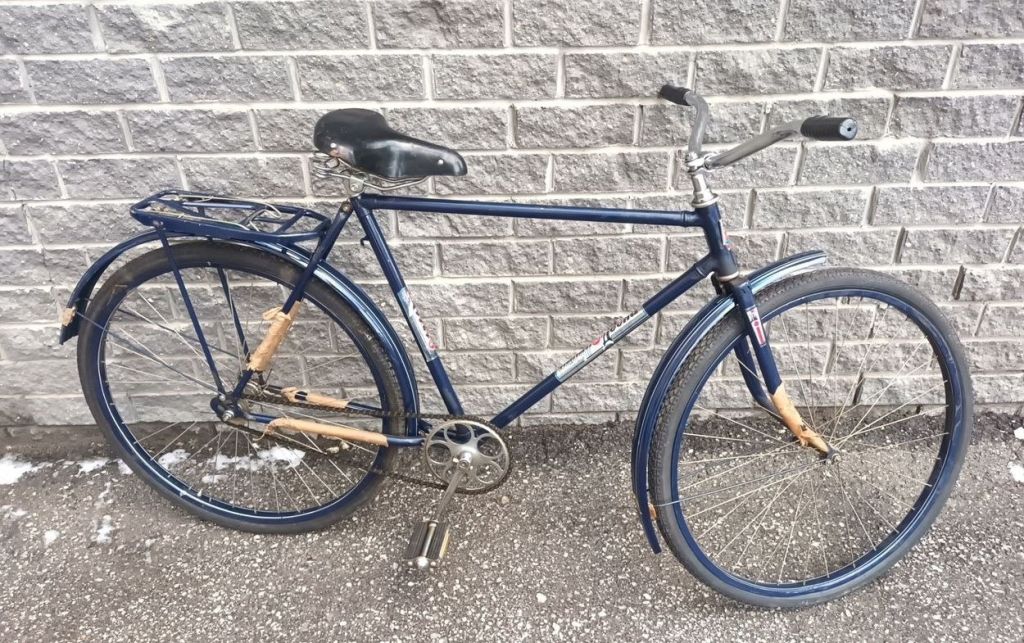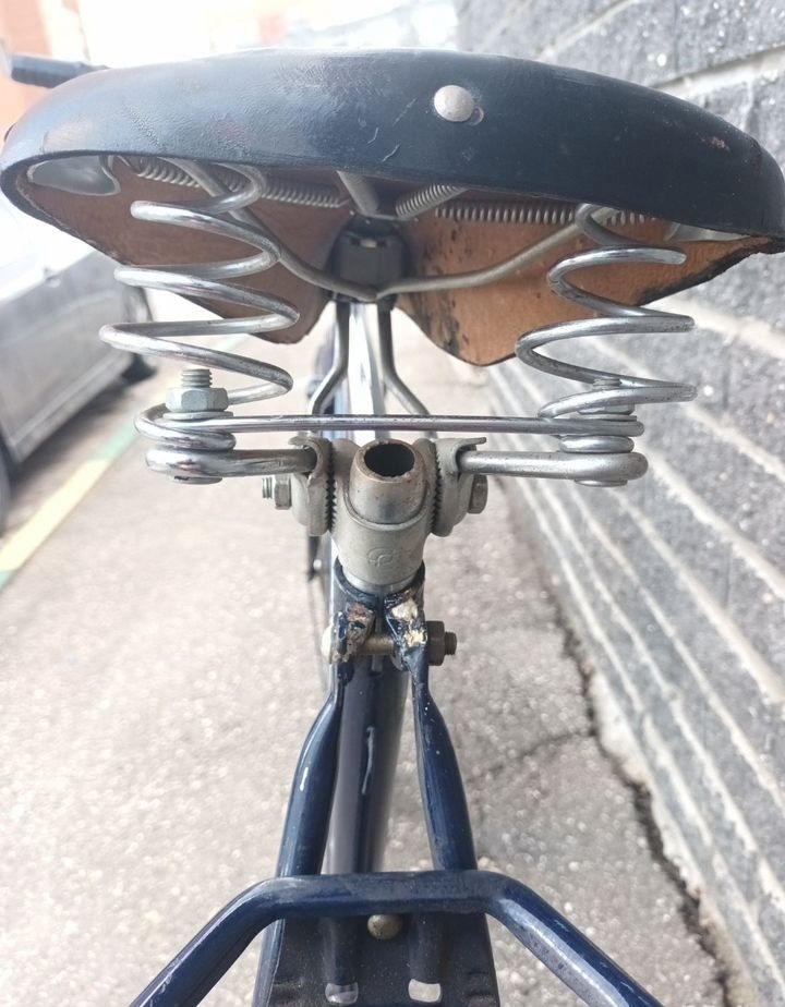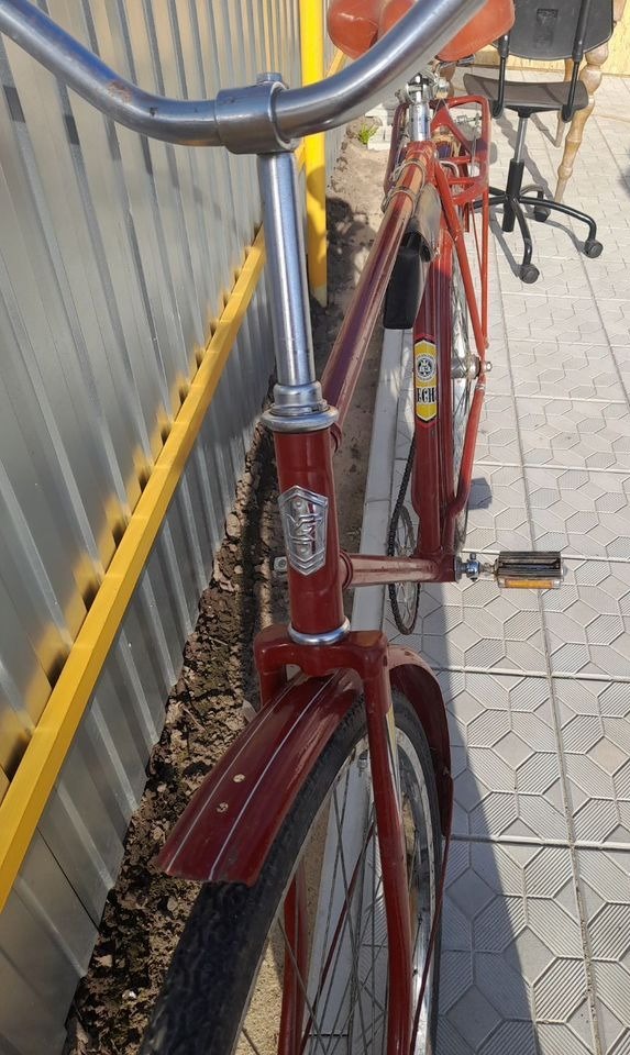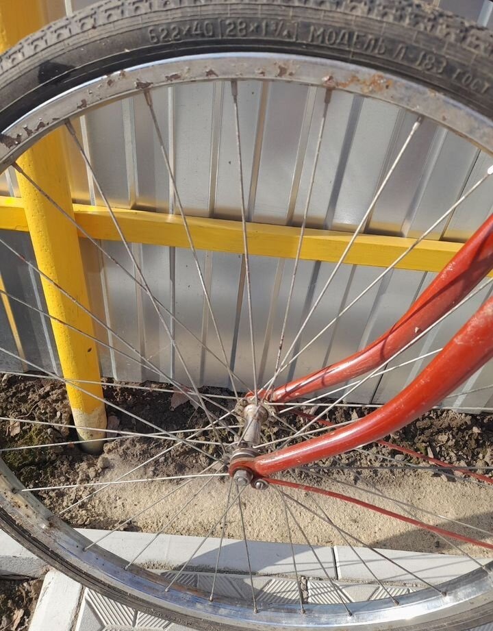 Не очень и хороший сохран: заднее колесо почти в труху, везде ржавчина. На покрытие седла без слёз не взглянуть... А ещё и педали разные. Правая, имхо, не родная.