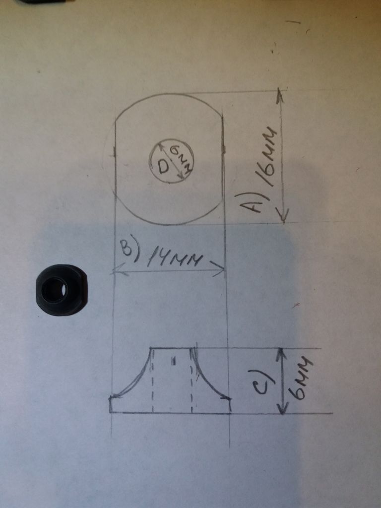 Я мерил просто внутренний диаметр. Резьбу померить нечем img/bk  Ну если диаметр внутреннего отверстия 6 мм  значит резьба М7.  Мне кажется что бы сравнить детали этого дилетантского чертежа хватит.
