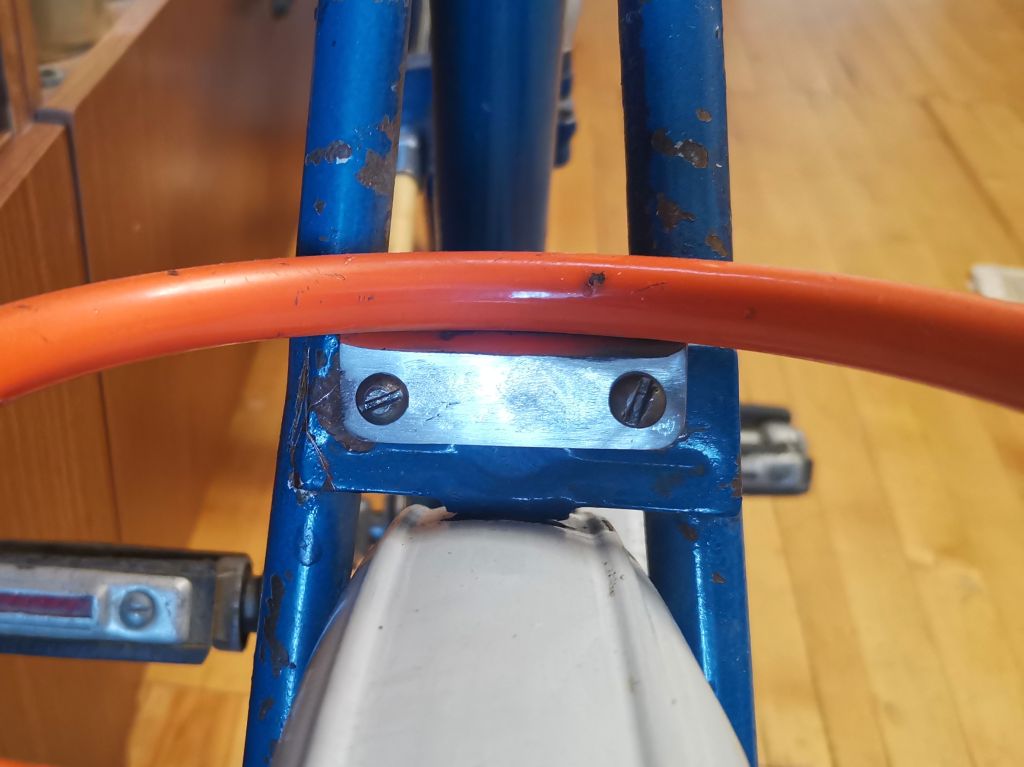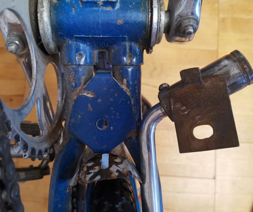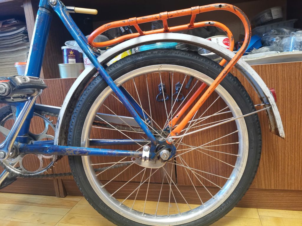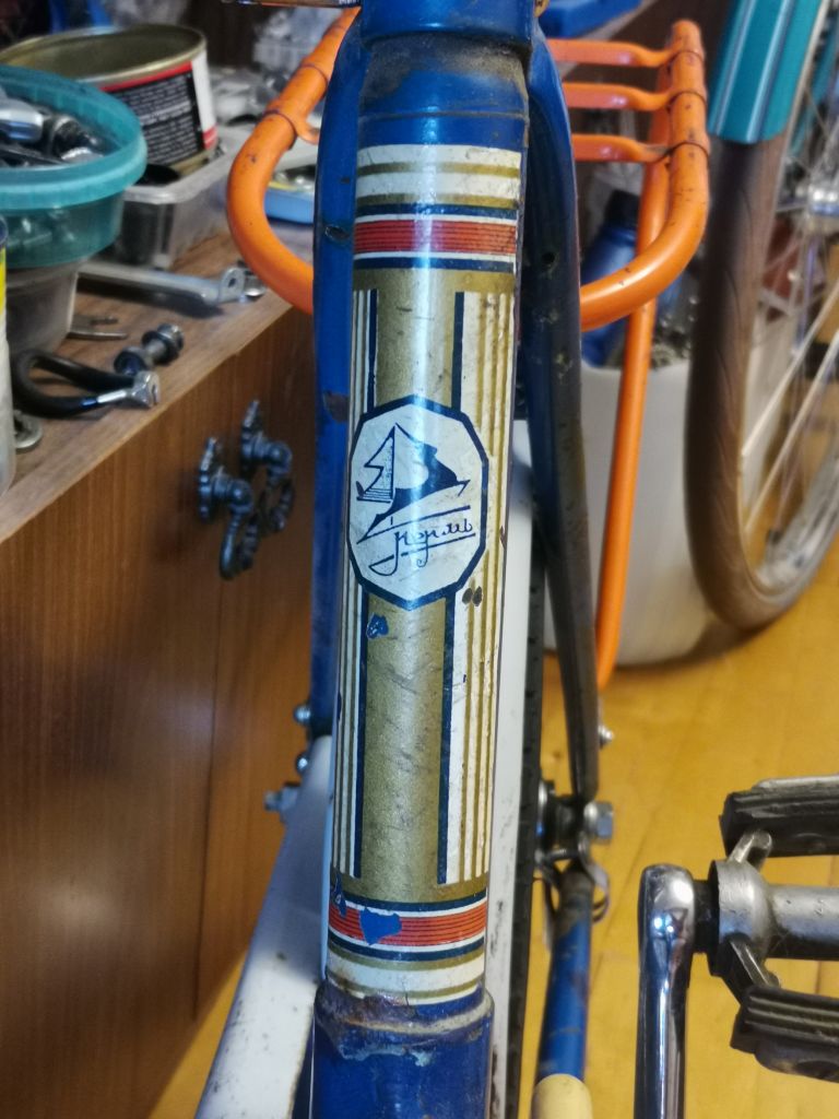 Очень интересный экземпляр — педали ещё с узкими окошками для катафотов. Возможно, велосипед может середины 70-х. На кареточном стакане просматривается клеймо "ПВЗ".