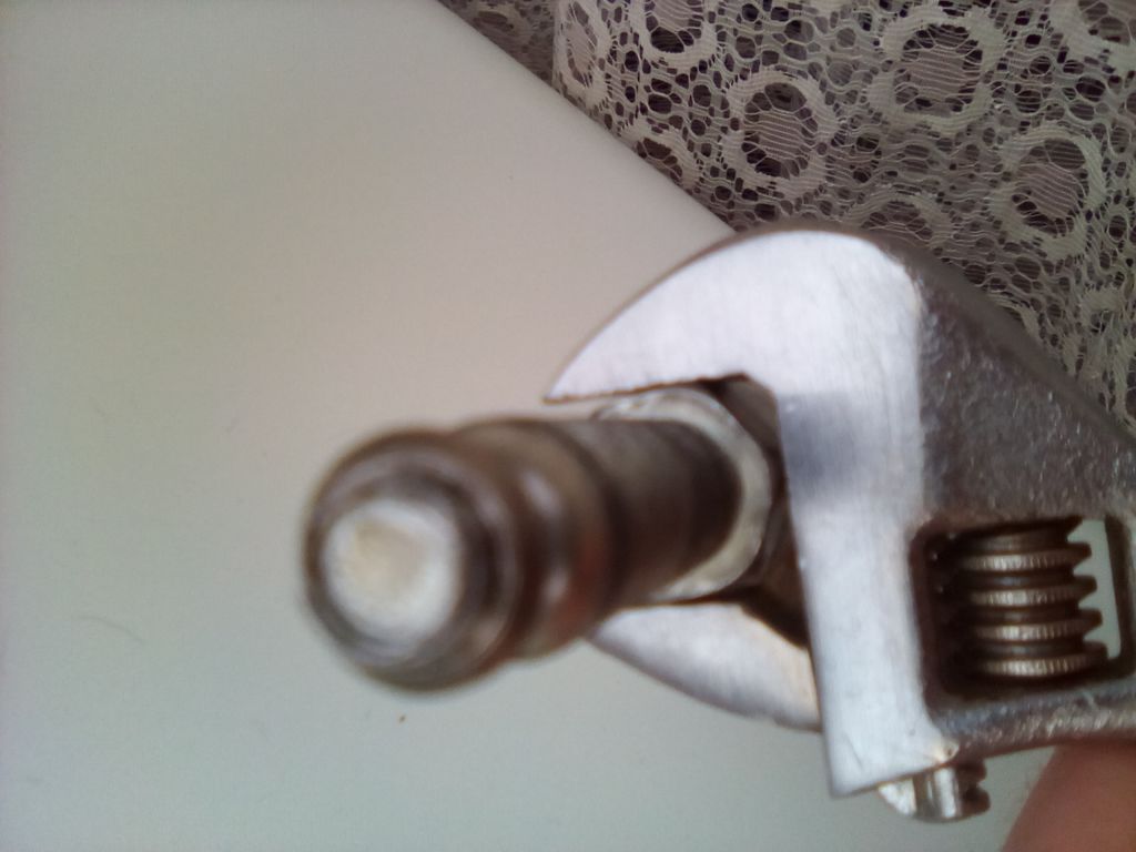 Вот тут должно видно, что разводной ключ при закрутке чуток заклинился и оставил зазор на грани, если его сейчас рвануть в другую сторону (торможение),то все это соединение разомкнется : тудым-сюдым/заклинило-педалирование/расклинило-тормоз  : и все это гораздо быстрее приходит в негодность, если не пластилин,то просто подольше этот процесс затянется. Не знаю,как там с системой под клин, но мне говорили, что у односкоростных велосипедов типа украина/урал тоже шатуны разбалтывались на раз два три, просто там были клинья помощнее,и они терпели поболе.